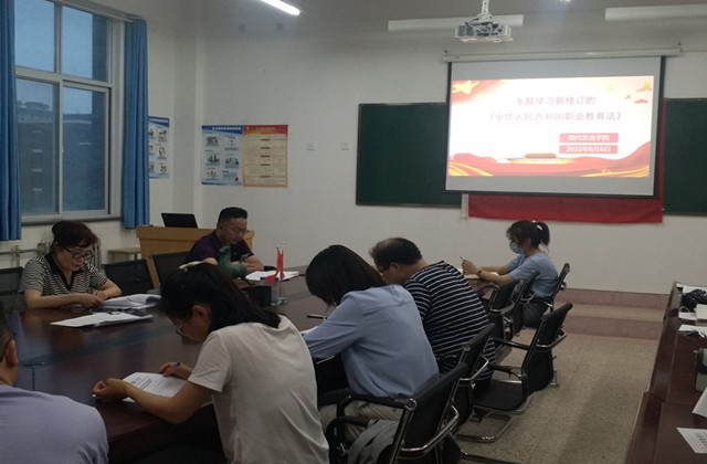 6月6日晚,現(xiàn)代農(nóng)業(yè)學(xué)院(鄉(xiāng)村振興學(xué)院)組織召開專題會(huì)議,學(xué)習(xí)新修訂的《中華人民共和國(guó)職業(yè)教育法》(以下簡(jiǎn)稱《職業(yè)教育法》)。會(huì)議由學(xué)院黨總支書記晏素珍主持,院長(zhǎng)金玉龍及全體教師參加了此次學(xué)習(xí)。