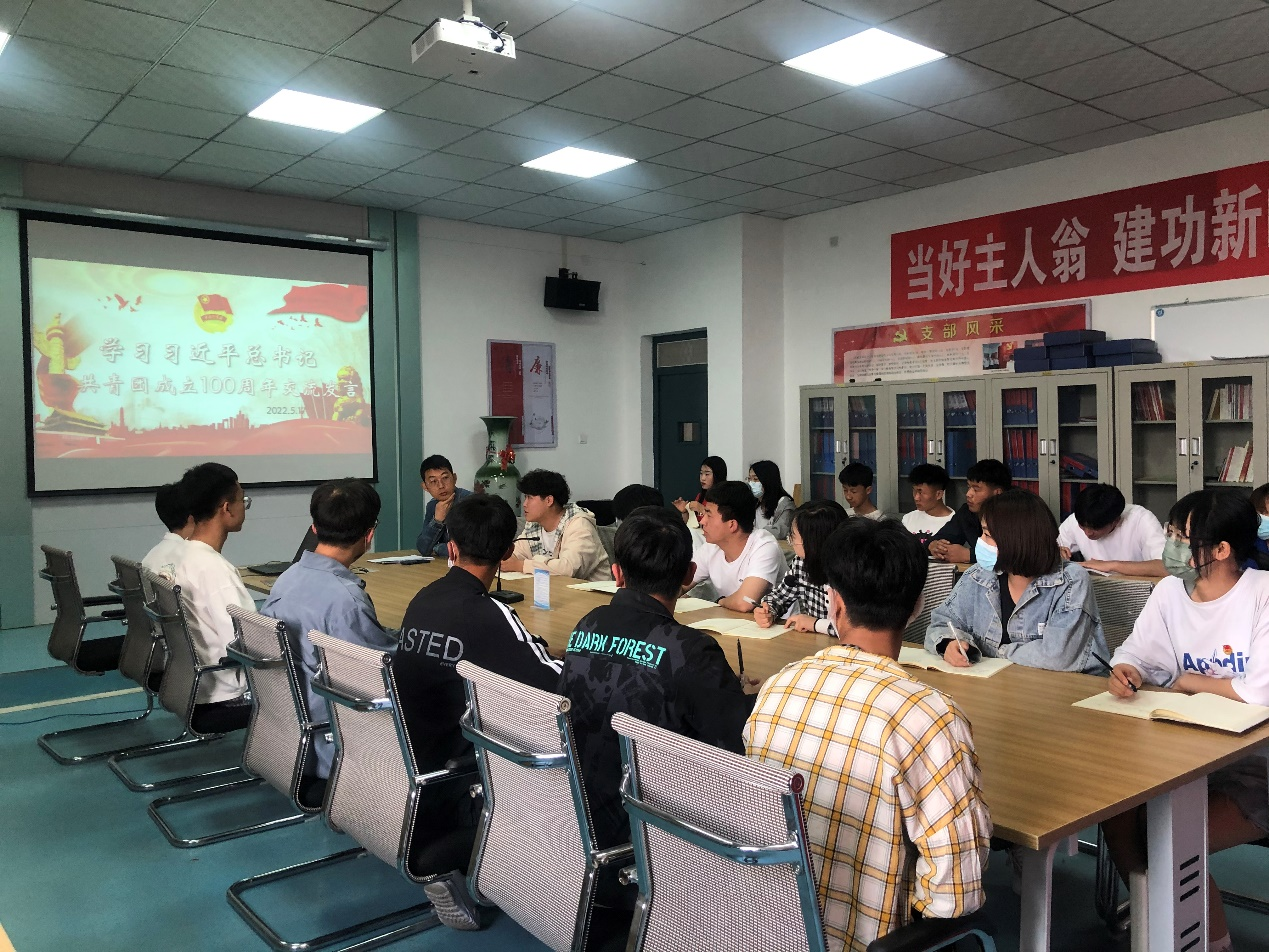 會上,院團(tuán)委成員和各班團(tuán)支部書記學(xué)習(xí)習(xí)近平總書記在慶祝中國共青團(tuán)成立100周年大會上的重要講話精神就立足工作崗位、結(jié)合思想感悟,從不同層面,不同角度作交流發(fā)言。