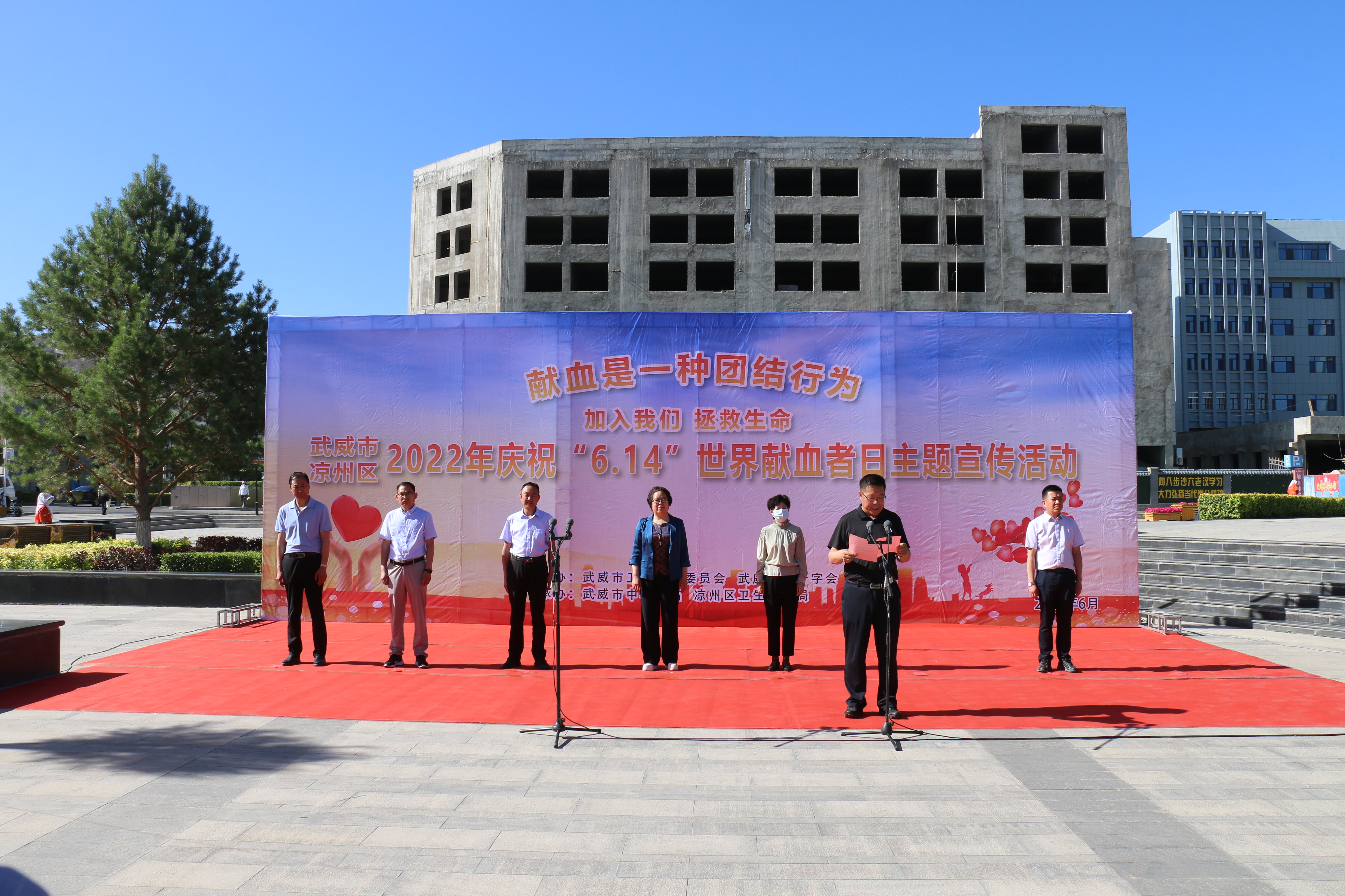 6月14日上午,由市衛(wèi)健委,市紅十字會(huì)主辦,市中心血站、涼州區(qū)衛(wèi)健局承辦的“獻(xiàn)血是一種團(tuán)結(jié)行為。加入我們, 拯救生命”慶祝第十九個(gè)世界獻(xiàn)血者日主題宣傳活動(dòng)在市文化廣場(chǎng)隆重舉行,市人大常委會(huì)副主任劉光美、市政協(xié)副主席趙曉暉、市政府副秘書長(zhǎng)李懷金出席活動(dòng)。學(xué)校黨委委員、副校長(zhǎng)田迎春參加活動(dòng),并代表學(xué)校發(fā)言。