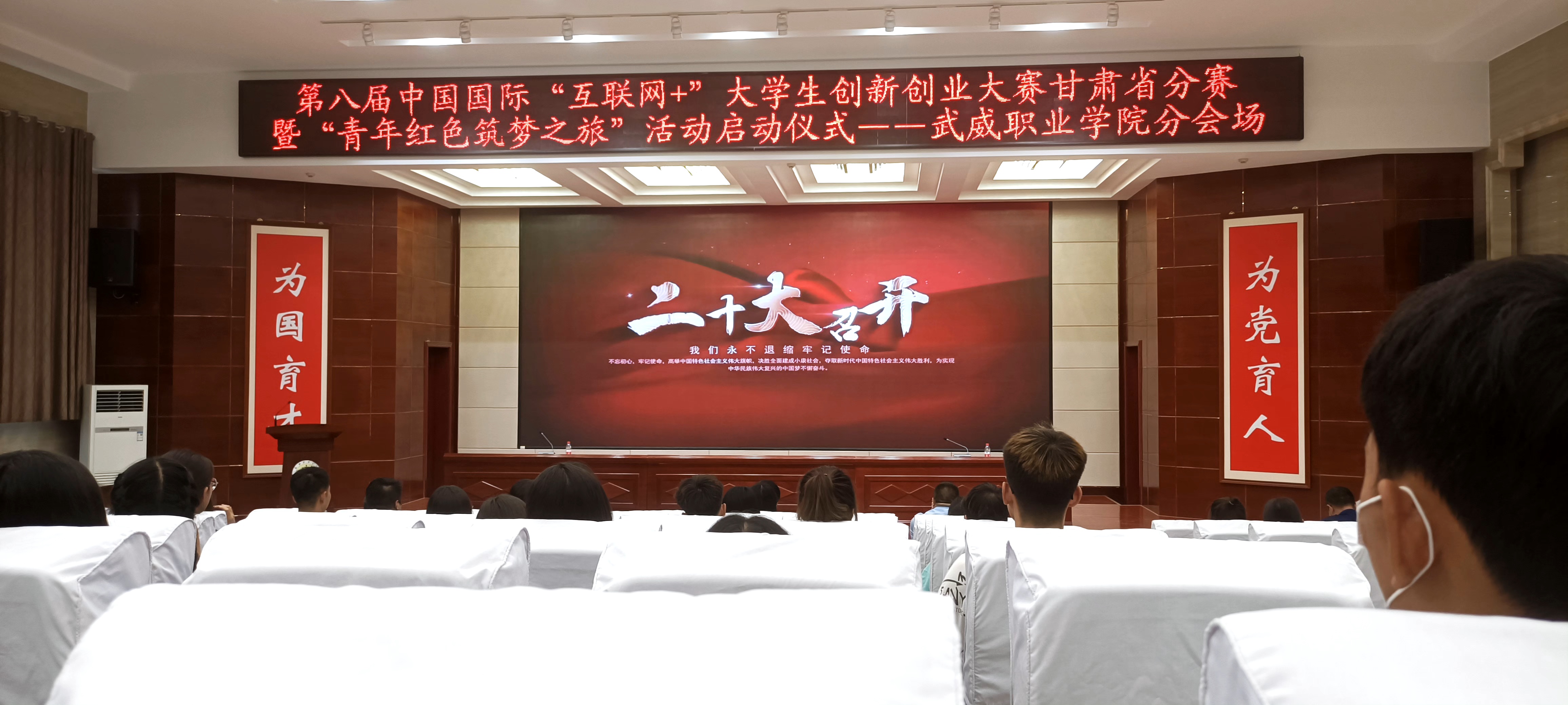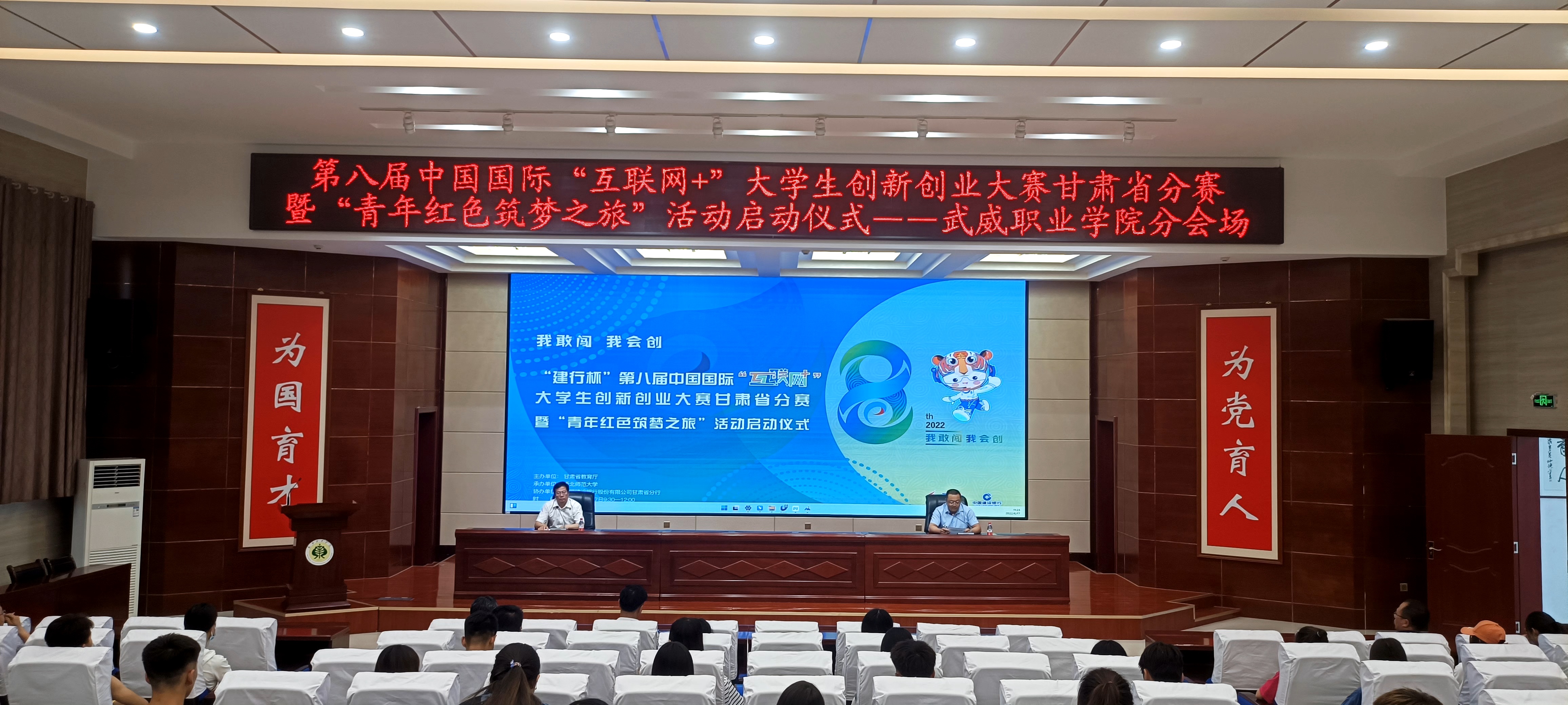 6月17日上午,第八屆中國國際“互聯(lián)網(wǎng)+”大學生創(chuàng)新創(chuàng)業(yè)大賽甘肅省分賽暨“青年紅色筑夢之旅”活動啟動儀式在西北師大舉行,我校在菁英廳設立分會場。本次啟動儀式分線上線下兩階段進行,第一階段以線上方式參加第八屆中國國際“互聯(lián)網(wǎng)+”大學生創(chuàng)新創(chuàng)業(yè)大賽甘肅省分賽啟動儀式,第二階段為我校啟動儀式。
