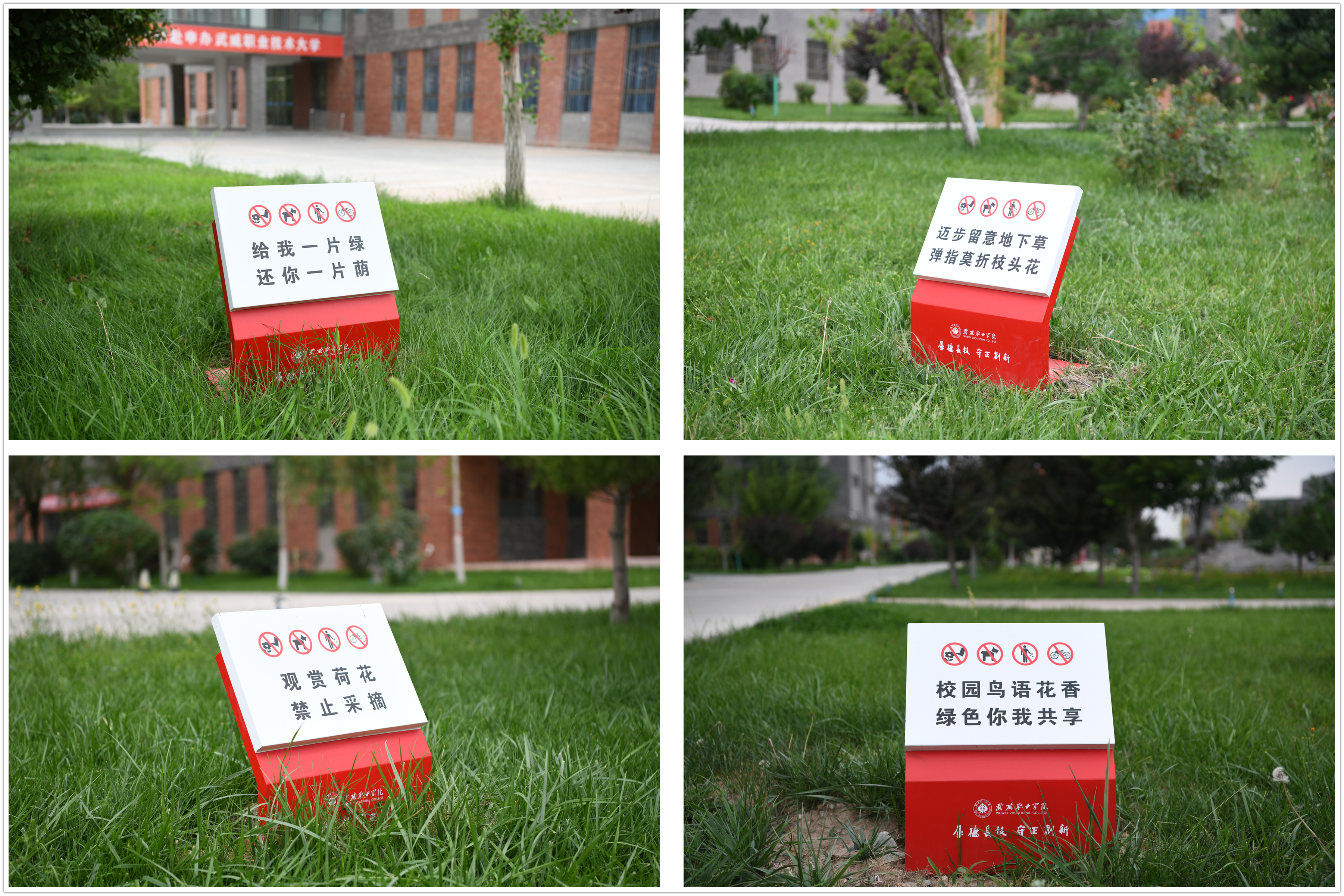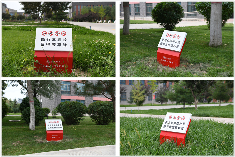 “繞行三五步,留得芳草綠”“要想校園凈又美,健康文明記心里”“手上留情花自香,腳下留情草如茵”。近日,在校園主干道周邊、草坪附近,這樣的文明言行提示語(yǔ)隨處可見。這是學(xué)校為不斷優(yōu)化校園環(huán)境,提升師生日常文明素養(yǎng),推動(dòng)文明校園建設(shè)的重要舉措,安裝完成后得到了廣大師生的高度贊賞。