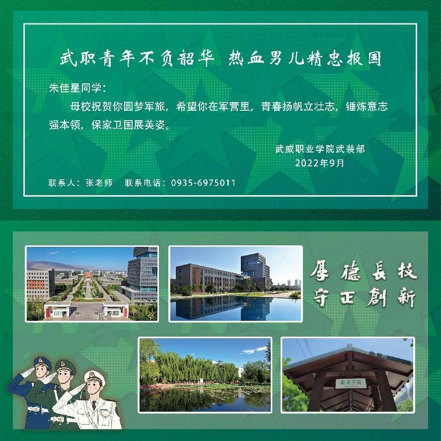 金鑫代表涼州區(qū)人武部和兵役機(jī)關(guān),感謝武威職業(yè)學(xué)院多年來一直對征兵工作的大力支持,感謝學(xué)校為部隊輸送優(yōu)秀青年,并要求入伍大學(xué)生,嚴(yán)格訓(xùn)練,做好從學(xué)生到戰(zhàn)士的迅速轉(zhuǎn)變,早日成為一名合格的人民子弟兵。