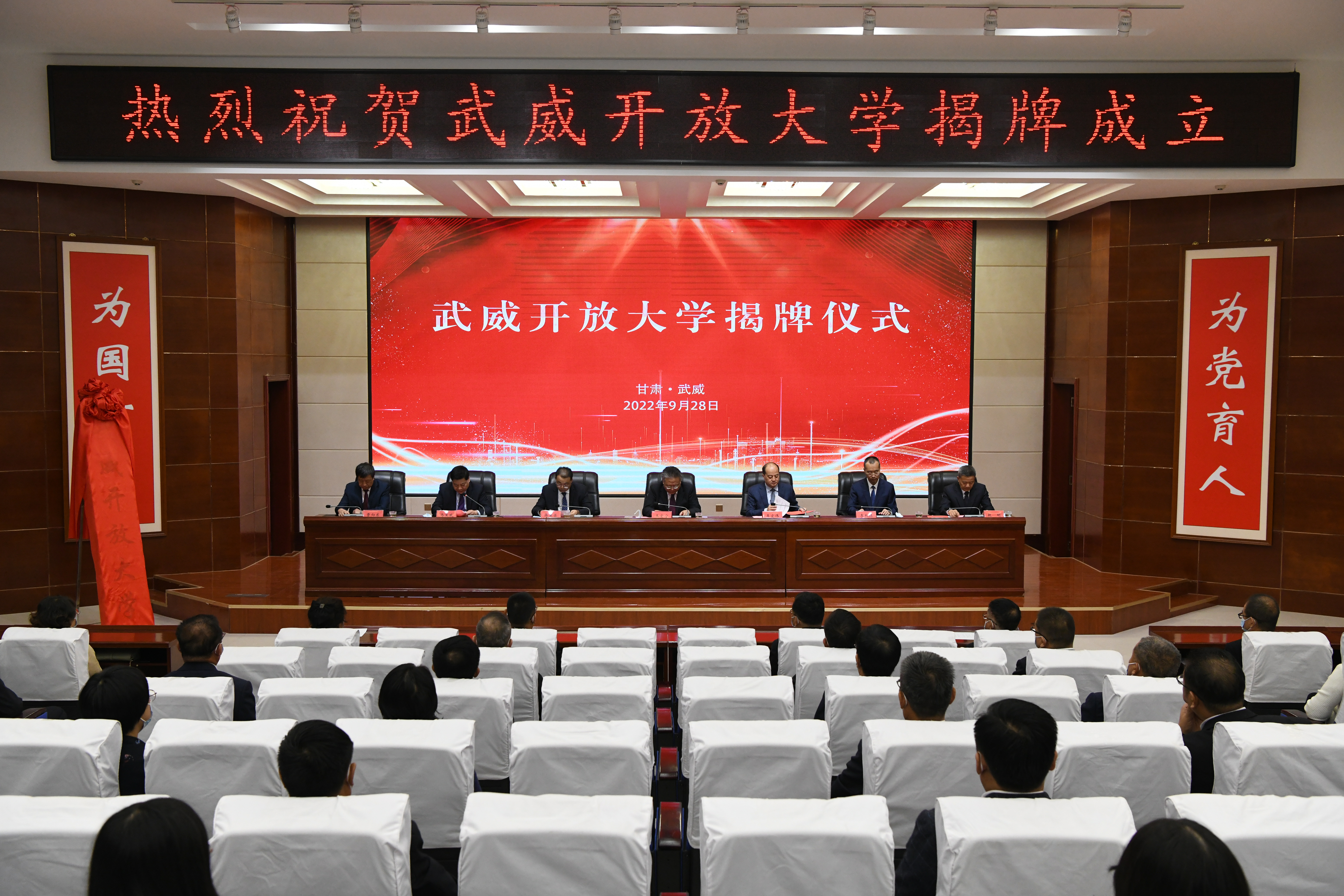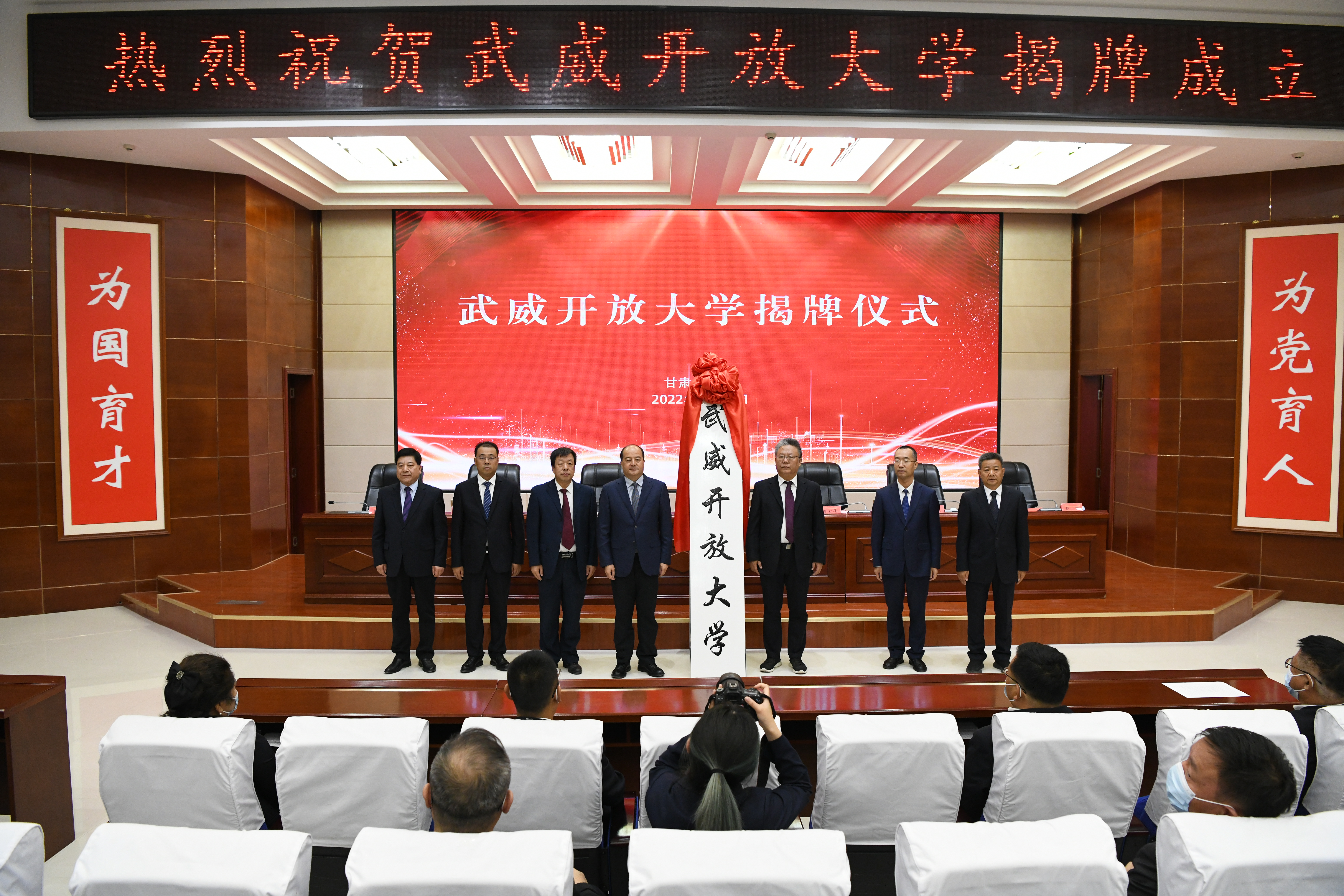 甘肅開放大學黨委副書記、校長王宏寧,武威市委常委、秘書長李宏偉出席,并為武威開放大學揭牌。