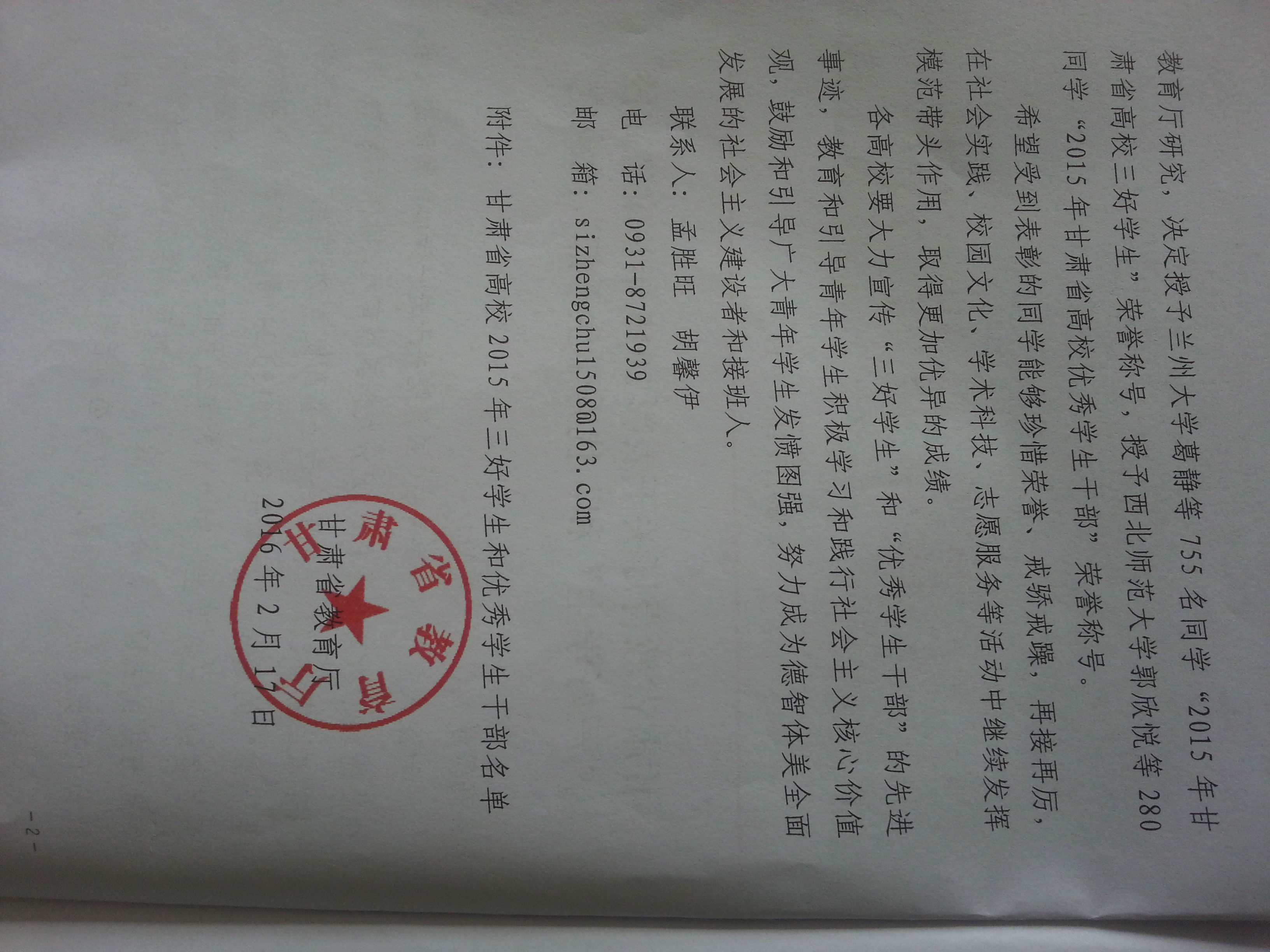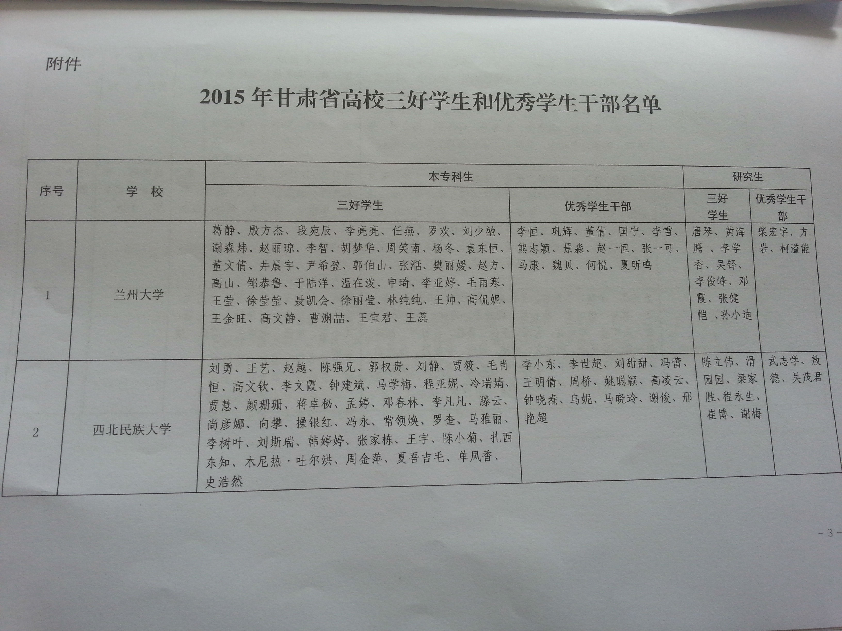 甘肅省教育廳關于表彰2015年甘肅省高?!叭脤W生”和“優(yōu)秀學生干部”的決定