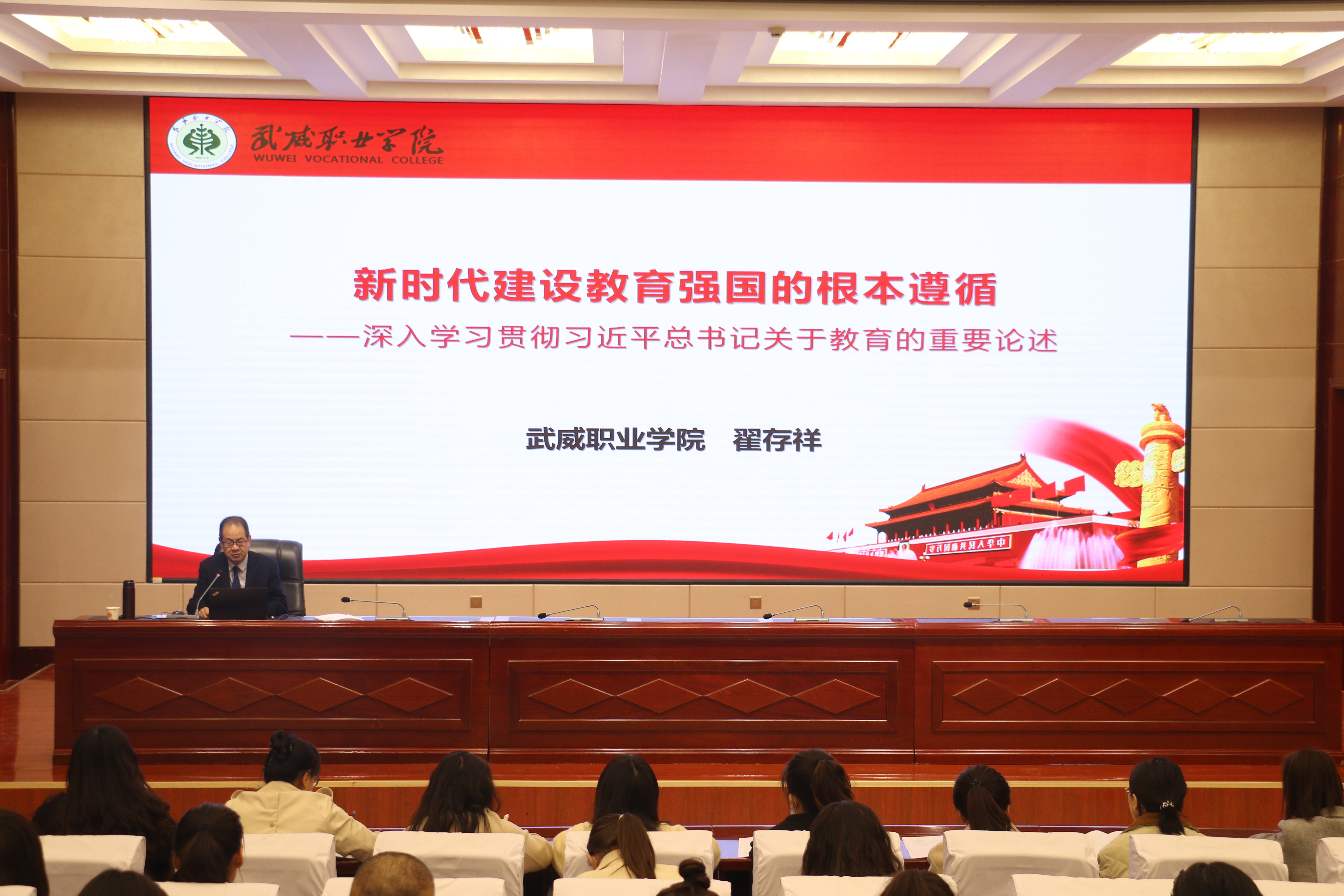 開(kāi)班儀式后,翟存祥為新教師作了題為《新時(shí)代建設(shè)教育強(qiáng)國(guó)的根本遵循--深入學(xué)習(xí)貫徹習(xí)近平總書(shū)記關(guān)于教育的重要論述》的專題培訓(xùn)“第一講”,拉開(kāi)了此次培訓(xùn)的序幕。