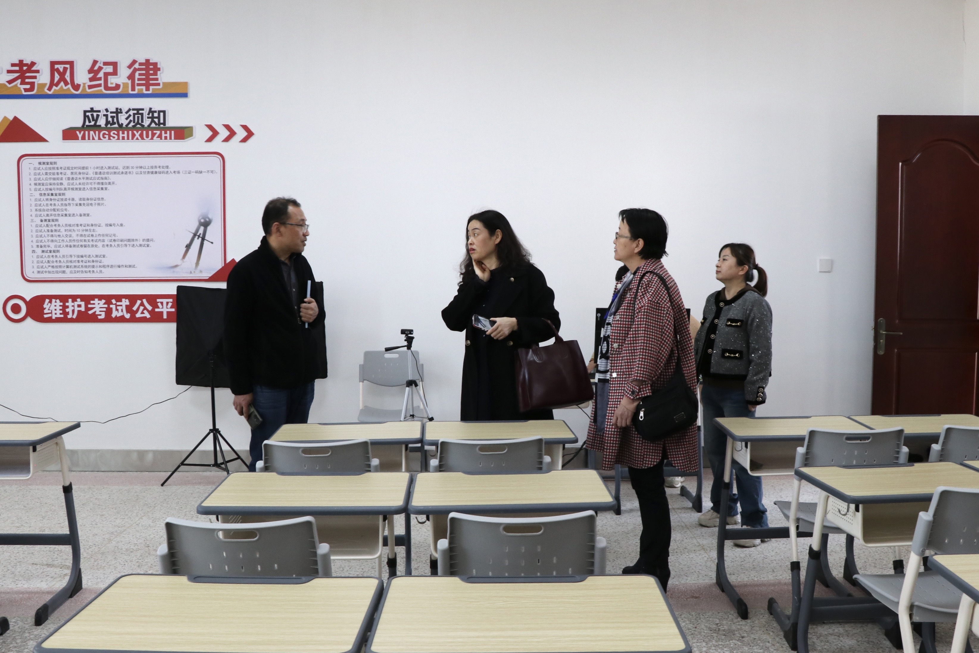評(píng)估驗(yàn)收組采取實(shí)地查看、聽(tīng)取匯報(bào)、座談交流等方式對(duì)我校測(cè)試站的標(biāo)準(zhǔn)化建設(shè)工作進(jìn)行了檢查。新建的普通話標(biāo)準(zhǔn)化測(cè)試機(jī)房配備20個(gè)機(jī)位,空間場(chǎng)地充足,面積規(guī)模較大;同時(shí)建成了候測(cè)室、信息采集室,布局科學(xué)合理,設(shè)備配置齊全;制作了語(yǔ)言文字宣傳欄、“推普”展板、標(biāo)志牌、指引牌等,為普通話測(cè)試營(yíng)造了良好的考試環(huán)境。