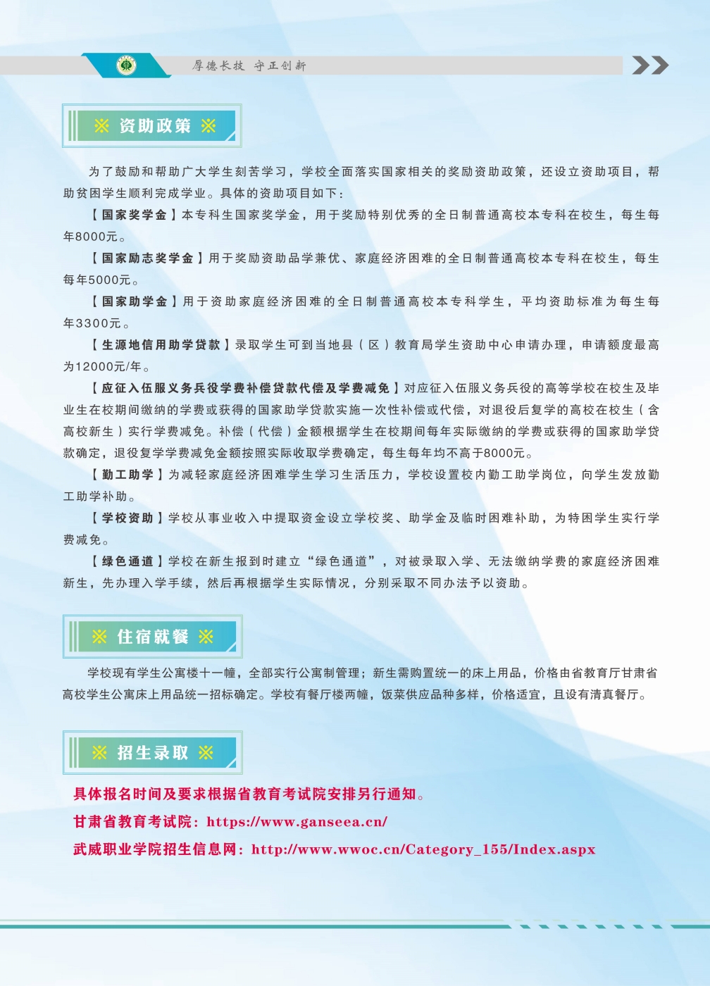 武威職業(yè)學(xué)院重點(diǎn)專業(yè)招生簡章