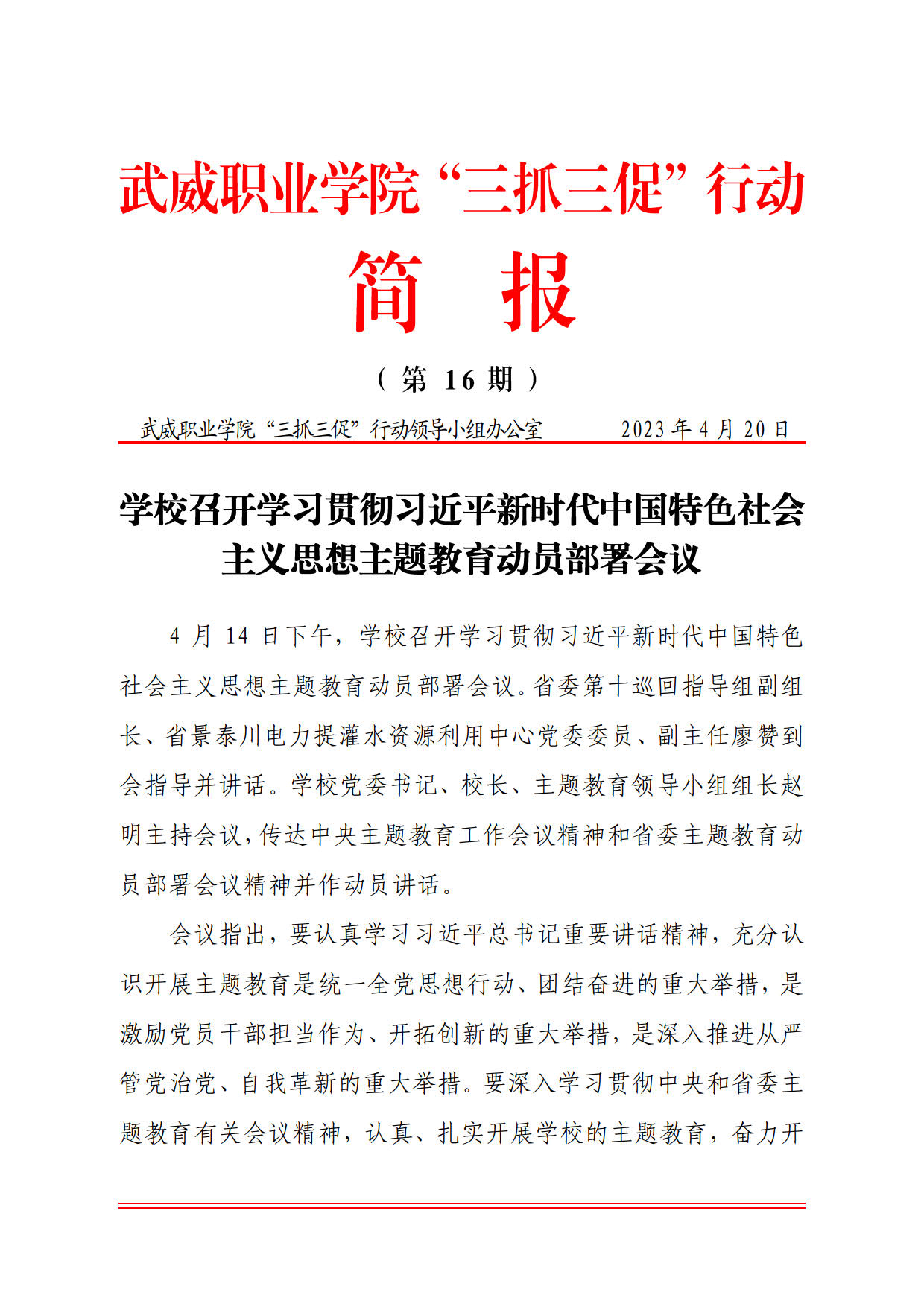 簡(jiǎn)報(bào)第16期:學(xué)校召開學(xué)習(xí)貫徹習(xí)近平新時(shí)代中國(guó)特色 社會(huì)主義思想主題教育動(dòng)員部署會(huì)議