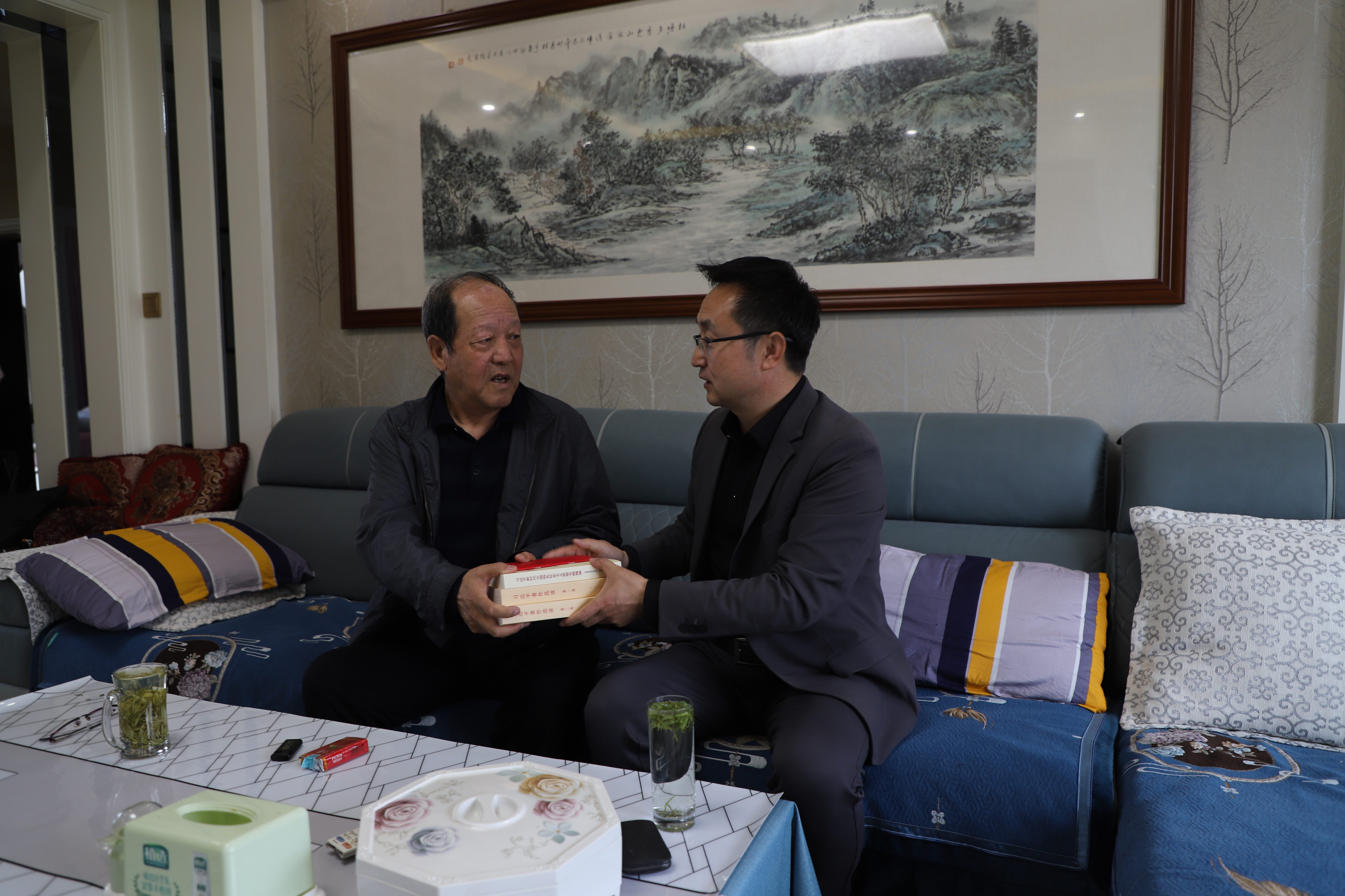 組織人事處工作人員為老黨員們送去了《中國共產(chǎn)黨章程》《習(xí)近平著作選讀(第一卷)》《習(xí)近平著作選讀(第二卷)》等主題教育學(xué)習(xí)資料,并介紹了學(xué)校主題教育的工作部署和開展情況,希望老黨員加強(qiáng)自學(xué),不斷提高政治素養(yǎng),對更好開展主題教育提出意見和建議。送學(xué)同志與老黨員們深入交談,詳細(xì)了解老黨員的身體、生活狀況,向他們送去了學(xué)校黨委的關(guān)懷和問候。