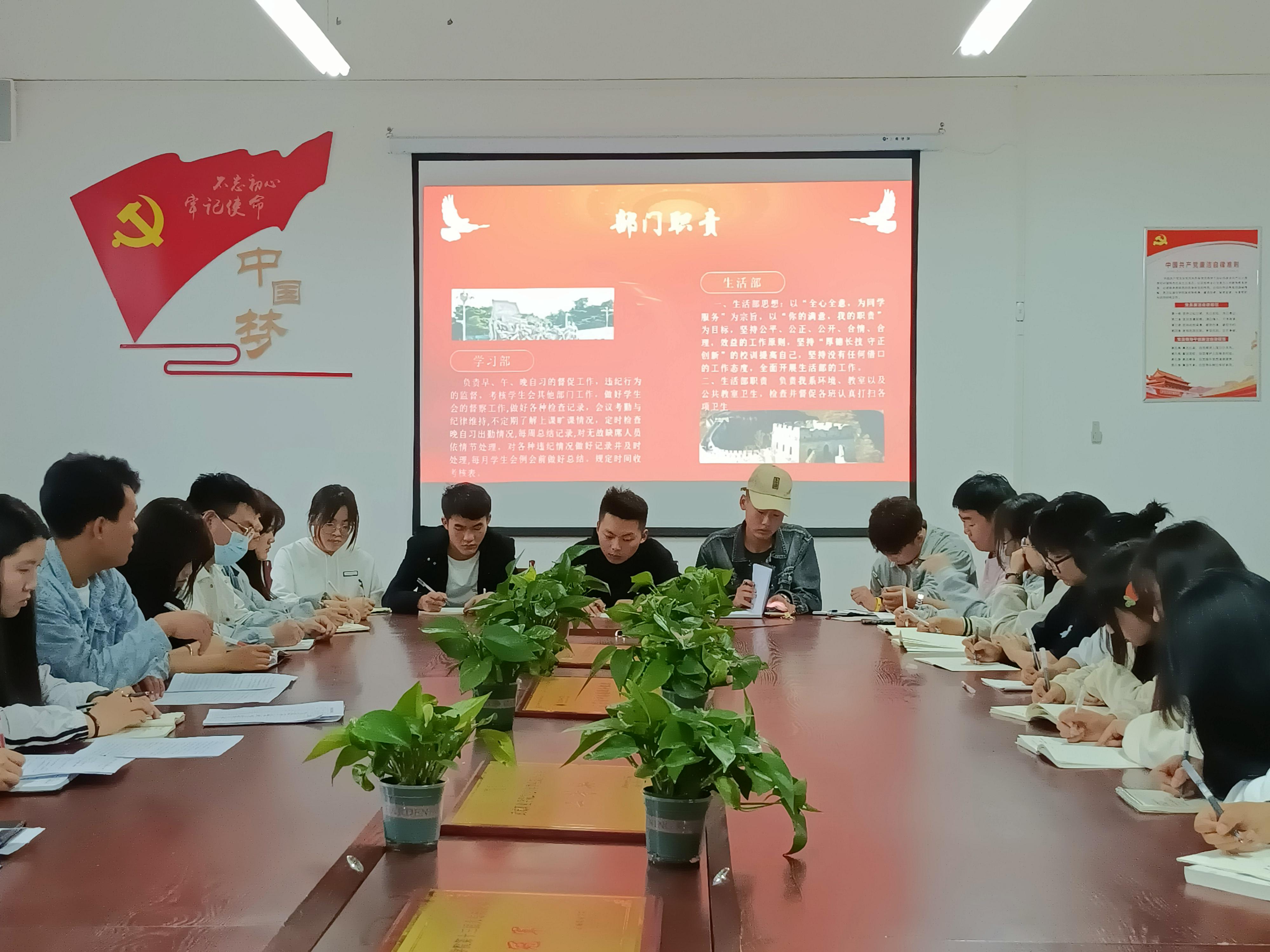 ? ? ? ?首先,會議第一項由李停強進行講述學生會的職責與義務,為促進各部門的團結,建造學院團學干部團結向上的和諧氛圍,本次會議是希望提高各個團學干部的思想素質,組織協調能力,責任服務意識都能貫徹到底,我們是為了更好的服務同學,所以作風等一定要端正。