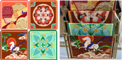 我校師生依托授權(quán)文物紋樣設(shè)計(jì)的“蓮花彩磚”“絢麗彩陶”“七彩天馬”“八鳥朝陽”等文創(chuàng)作品,主題鮮明、形式多樣,充分展示了我校在文創(chuàng)產(chǎn)品開發(fā)領(lǐng)域的專業(yè)能力。
