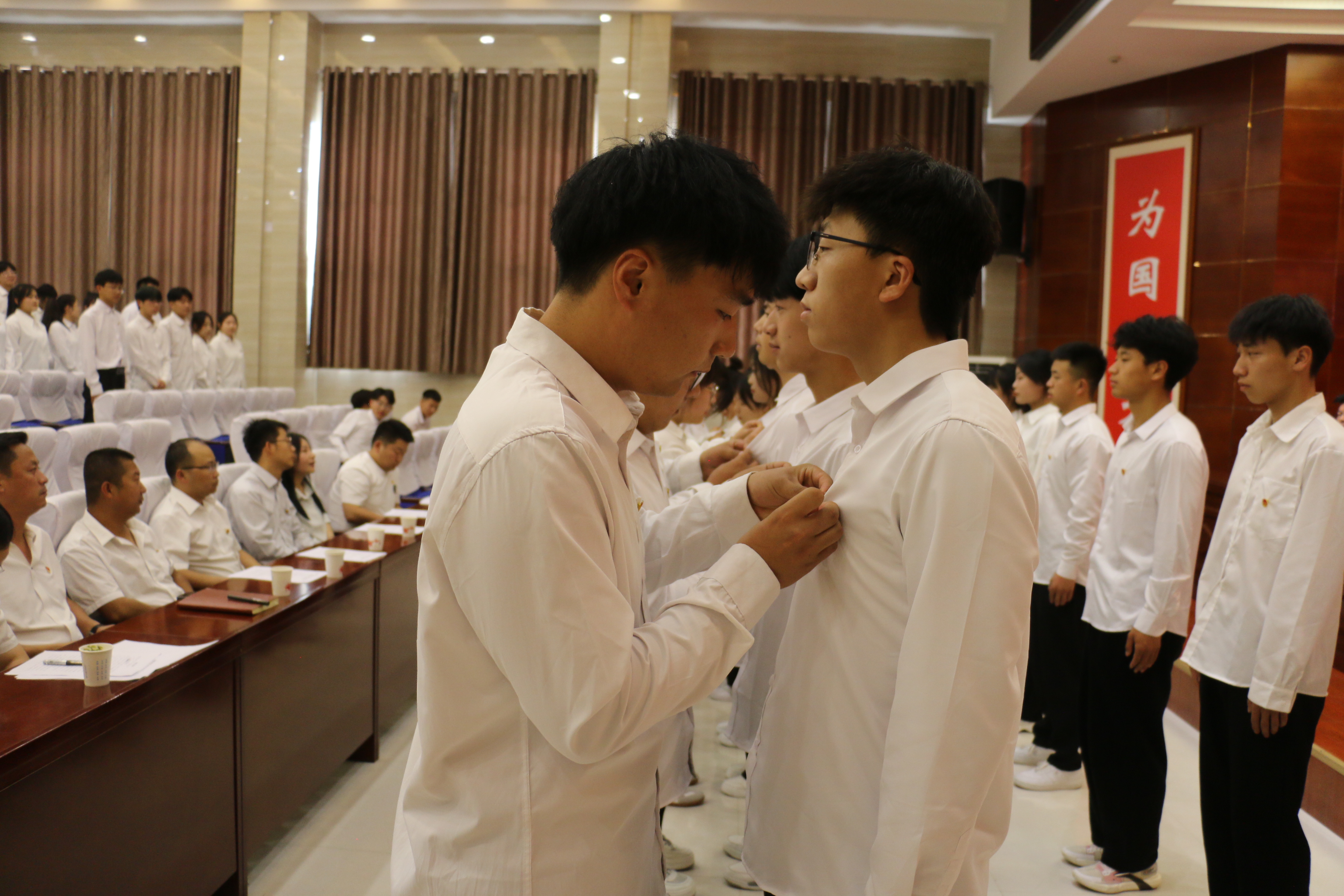 入團儀式上,校團委相關負責人宣讀了128名新團員名單,并向新團員闡釋了團徽的組成及象征意義。老團員代表為新團員代表佩戴了團徽,全體團員面對鮮艷的團旗,進行了莊嚴的宣誓。