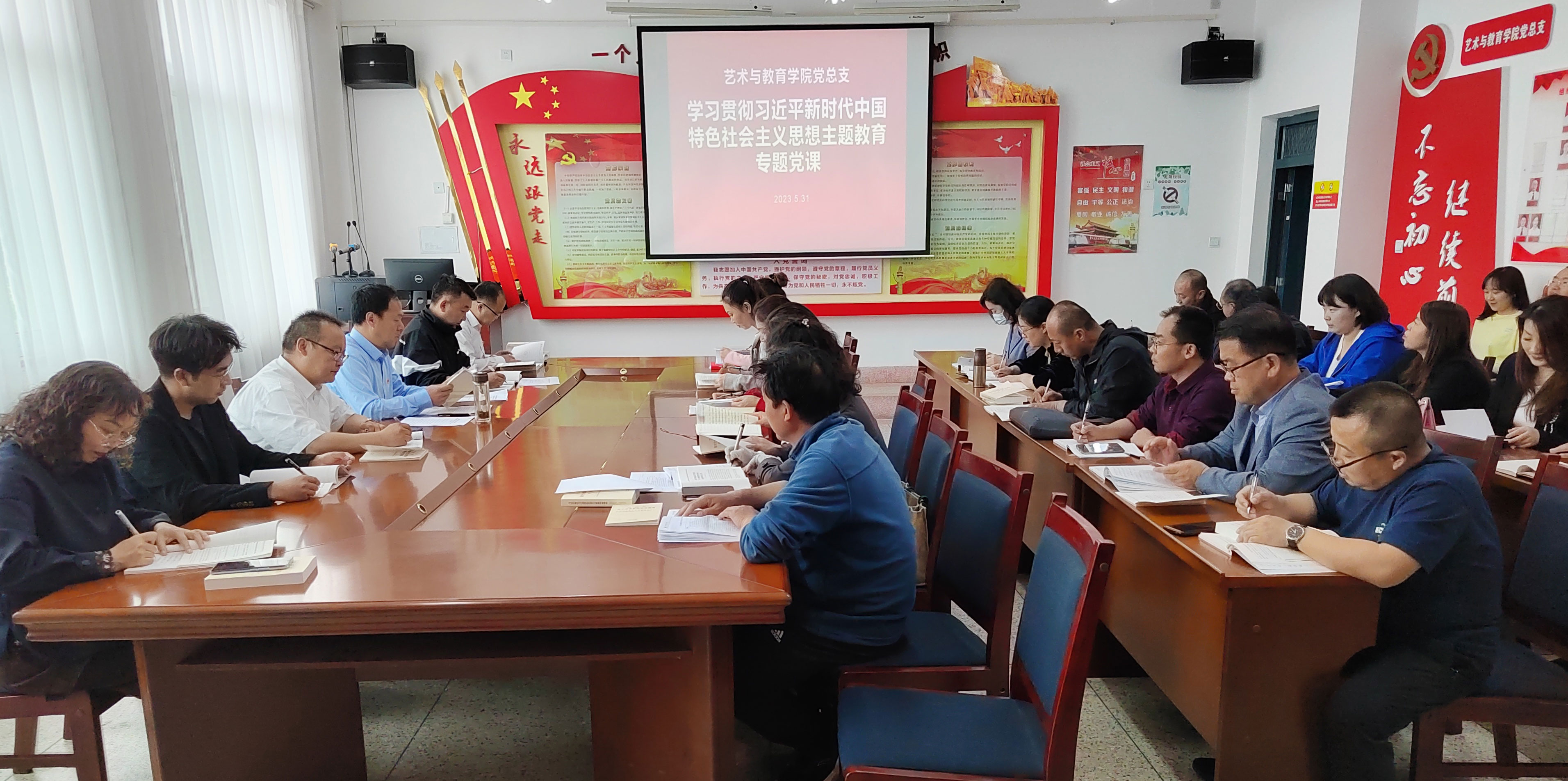 5月31日下午,藝術(shù)與教育學(xué)院黨總支書記王政在勵(lì)勤樓209會(huì)議室以《深刻領(lǐng)會(huì)新思想精髓推動(dòng)學(xué)院高質(zhì)量發(fā)展》為題,并結(jié)合個(gè)人學(xué)思踐悟和教育教學(xué)工作實(shí)際,講授學(xué)習(xí)貫徹習(xí)近平新時(shí)代中國特色社會(huì)主義思想主題教育專題黨課,藝術(shù)與教育學(xué)院黨總支全體黨員參加。