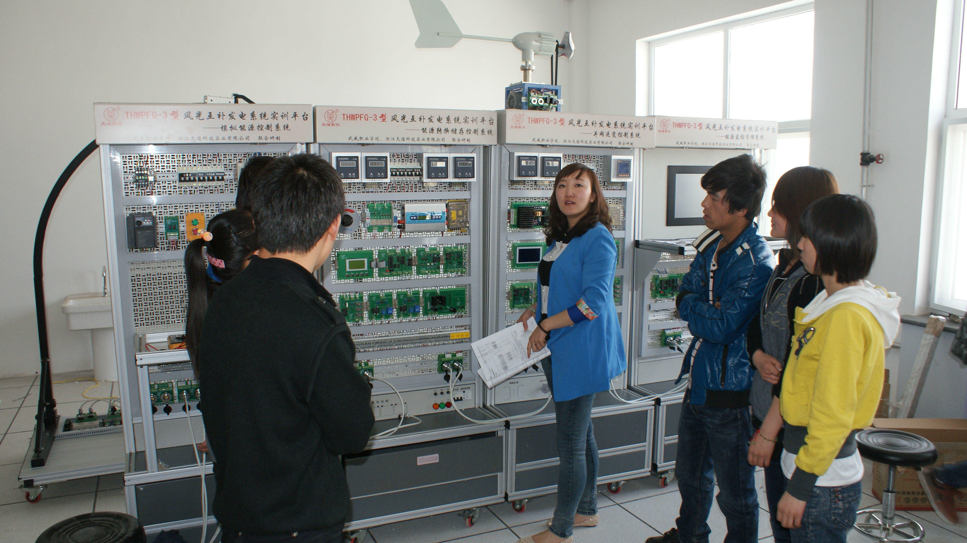 農(nóng)村能源模擬實訓室于2013年3月建成并投入使用,適用于光伏發(fā)電技術及應用、農(nóng)村能源與環(huán)境技術、太陽能光熱技術及應用、農(nóng)村電氣化技術等專業(yè)學生的實驗實訓。相對應的實訓課程有《光伏發(fā)電技術的分析與應用》、《風能利用技術及實踐》、《太陽能利用技術實踐》、《單片機原理與應用》《C語言程序設計》、《微機監(jiān)控》等課程。