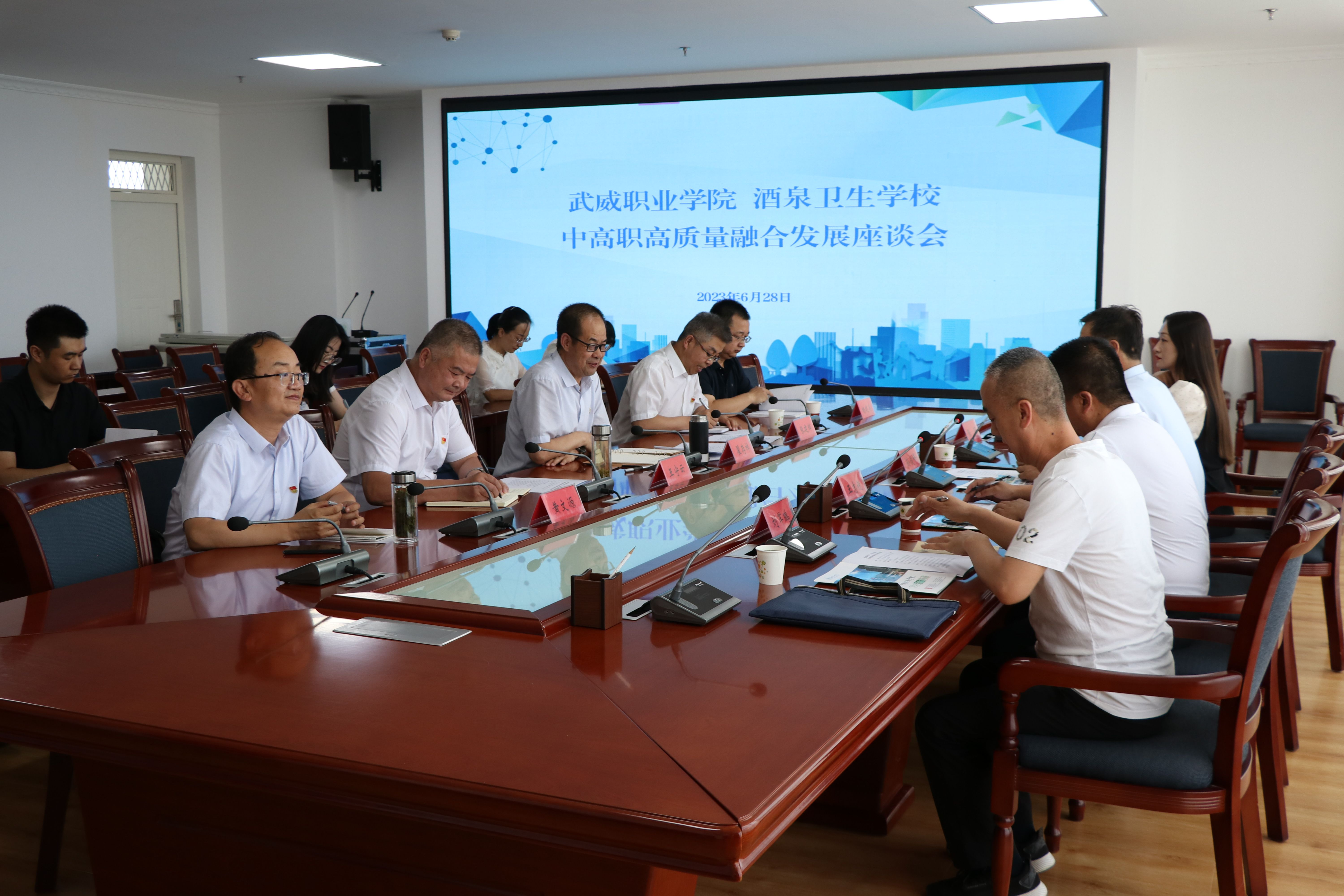 6月28日下午,酒泉衛(wèi)生學校黨委委員、副校長孫俊峰帶領教務科、招生辦公室負責人來我校考察交流。雙方就進一步加強醫(yī)藥衛(wèi)生類專業(yè)學生貫通培養(yǎng)工作在能源樓811會議室開展交流座談。學校黨委副書記翟存祥,黨委委員、副校長王守云,護理學院負責人張建輝,藥學院負責人楊建美,醫(yī)學技術學院負責人黃文源及教師代表參加會議。會議由翟存祥同志主持。