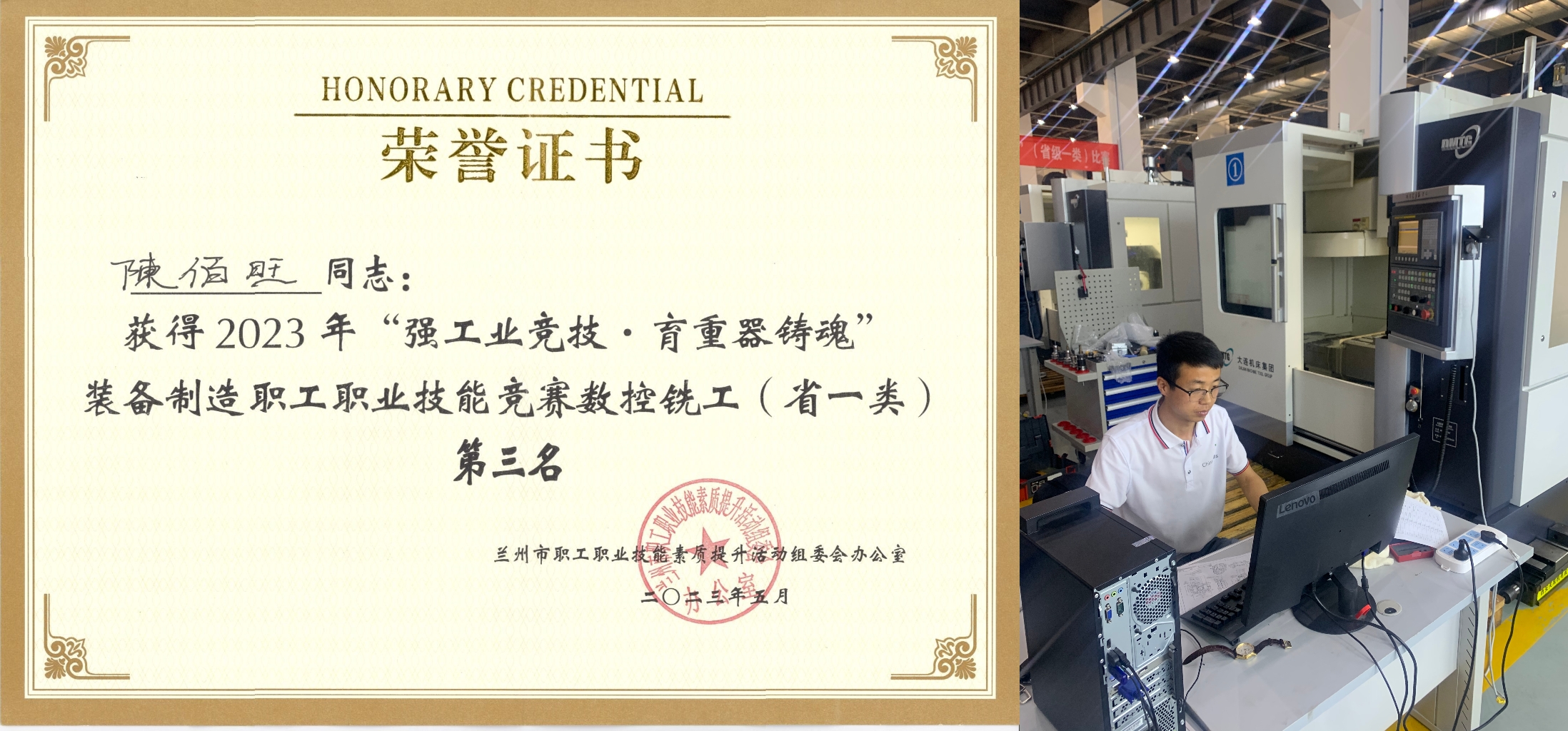為深入學(xué)習(xí)貫徹黨的二十大精神,聚焦實(shí)施強(qiáng)工業(yè)、強(qiáng)科技、強(qiáng)省會(huì)、強(qiáng)縣城“四強(qiáng)行動(dòng)”,著力打造高技能人才隊(duì)伍,2023年6月,由甘肅省總工會(huì)主辦,蘭州市總工會(huì)和蘭石集團(tuán)承辦的2023年全省職工職業(yè)技能競賽“數(shù)控銑”賽項(xiàng)省級一類決賽在蘭州新區(qū)舉辦,來自全省22個(gè)企事業(yè)單位46名職工選手參賽。工會(huì)聯(lián)合工程技術(shù)學(xué)院積極組隊(duì)參賽,代表武威市參加了本次比賽。經(jīng)過三天的競技角逐,我校教師陳佰旺取得二等獎(jiǎng)(第三名)的優(yōu)異成績,獲得了“甘肅省技術(shù)能手”和“甘肅省技術(shù)標(biāo)兵”榮譽(yù)稱號。