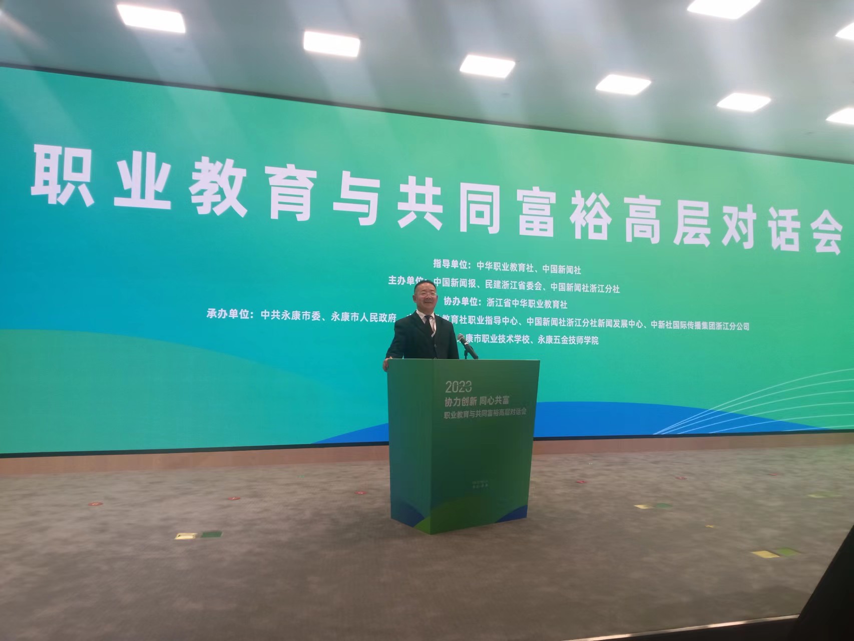 10月26日至27日,職業(yè)教育與共同富裕高層對話會在浙江金華永康市舉行。會議以“協(xié)力創(chuàng)新 同心共富”為主題,由中華職業(yè)教育社、中國新聞社指導(dǎo),中國新聞報、民建浙江省委會和中國新聞社浙江分社主辦,浙江省中華職業(yè)教育社協(xié)辦。全國人大常委會副委員長、中華職業(yè)教育社理事長郝明金,浙江省政協(xié)副主席、浙江省中華職業(yè)教育社主任陳小平出席會議,國內(nèi)職業(yè)教育領(lǐng)域?qū)<摇W(xué)者及職業(yè)院校、行業(yè)協(xié)會、學(xué)術(shù)機(jī)構(gòu)代表等約300人圍繞東西協(xié)作、產(chǎn)教融合等議題展開深入探討。