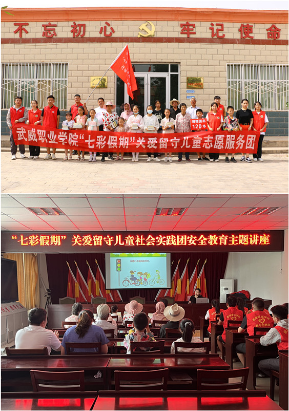 “七彩假期”關(guān)愛留守兒童實踐團赴九墩灘生態(tài)建設(shè)指揮部各村落,發(fā)放假期安全教育手冊、啟蒙性教育宣傳冊,針對留守兒童家庭進行入戶調(diào)研,調(diào)研留守兒童生活和學(xué)習(xí)中面臨的主要困難,并進行一對一結(jié)對幫扶。與武威市腫瘤醫(yī)院合作開展了安全教育知識講座,并為當(dāng)?shù)貎和栀?20冊圖書,通過輔導(dǎo)作業(yè)、捐贈圖書讓孩子們感受關(guān)懷溫暖,借助網(wǎng)絡(luò)宣傳提高農(nóng)村地區(qū)留守兒童家庭的社會關(guān)注度,體現(xiàn)當(dāng)代大學(xué)生的青年擔(dān)當(dāng)。