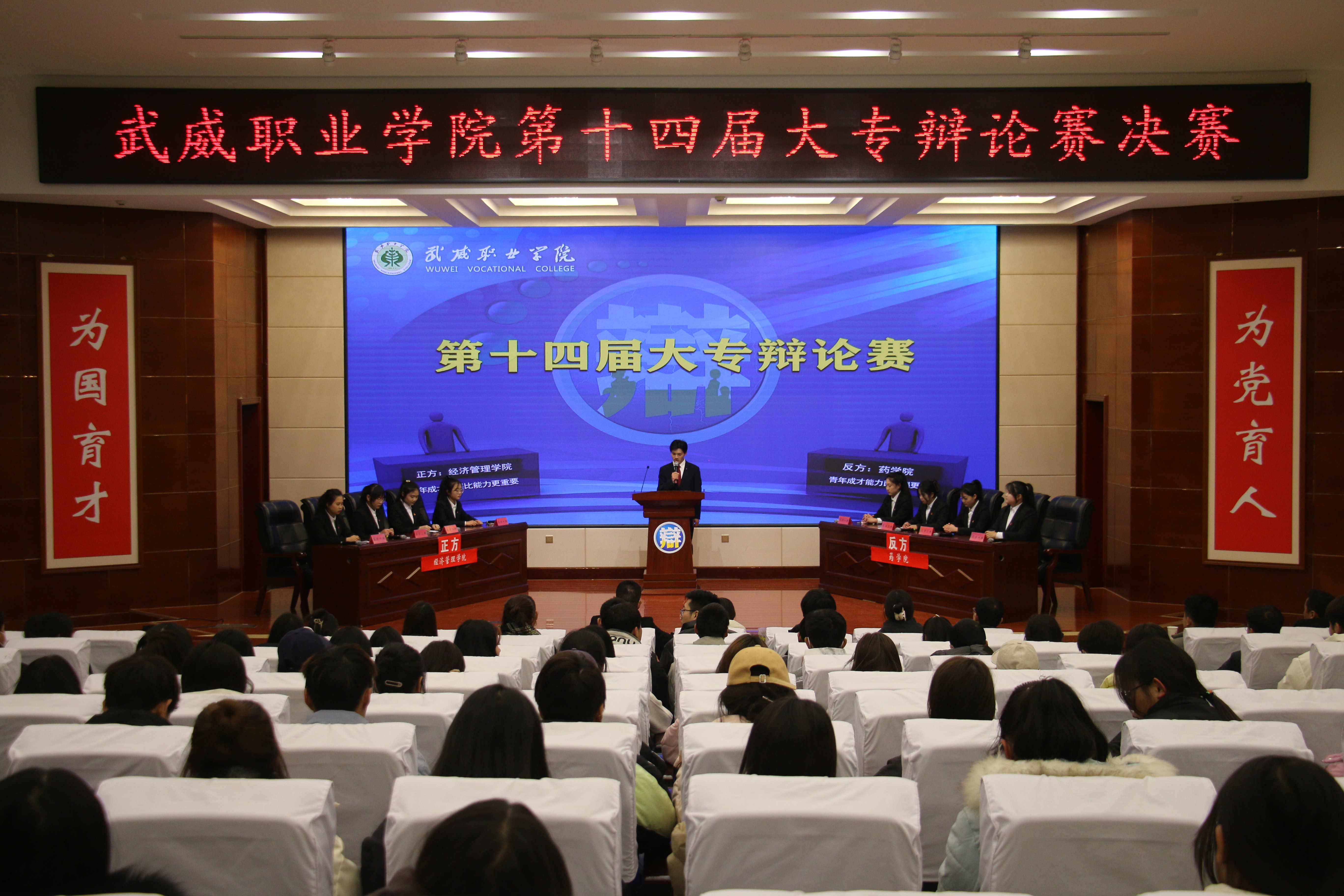 以辯論探索真理,以真理照亮未來!為深入學習習近平新時代中國特色社會主義思想,培育和踐行社會主義核心價值觀,提升大學生邏輯思維能力和語言表達能力,12月16日晚,第十四屆大專辯論賽決賽在學生發(fā)展中心菁英廳舉行,學校黨委委員、紀委書記、監(jiān)察專員陳曉煜出席活動并頒獎,200余名師生現(xiàn)場觀看了比賽。