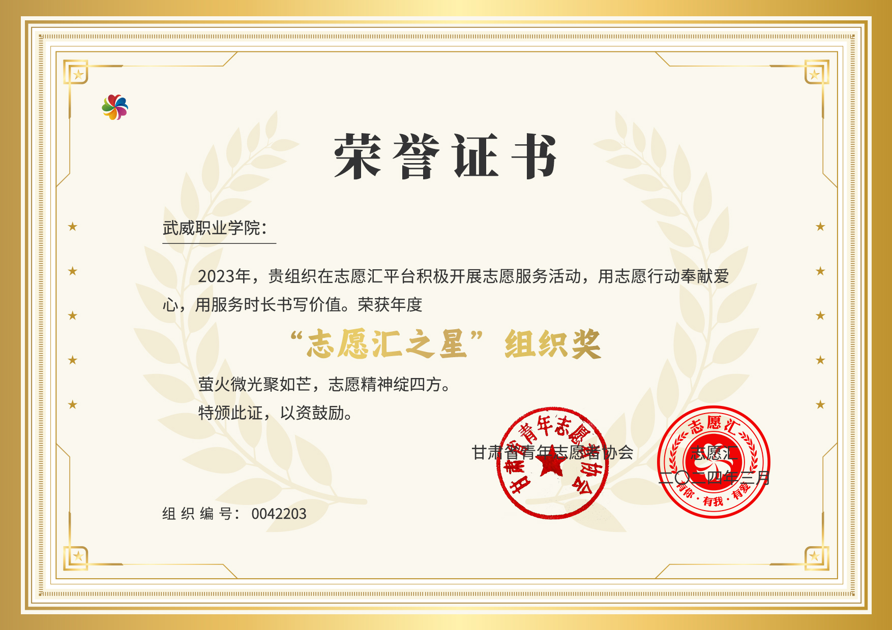 學校獲評2023年度 “志愿匯之星”年度組織獎