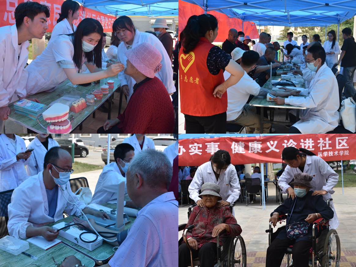 醫(yī)學技術(shù)學院選派了中醫(yī)學、針灸推拿學、口腔醫(yī)學、醫(yī)學檢驗等多位經(jīng)驗豐富的專業(yè)醫(yī)師,走進基層,現(xiàn)場進行義診、針灸推拿、測血糖、測血壓和中醫(yī)藥健康知識宣講等,一共為100多名社區(qū)群眾義診服務?;顒蝇F(xiàn)場各科醫(yī)師耐心的解答了居民們關(guān)心的健康問題,并根據(jù)每一位居民的個人情況提供了具有針對性的健康建議和科學的生活指導。參與義診的各專業(yè)學生志愿者們也在實踐中得到了鍛煉和提升。