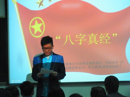 主題團(tuán)會上,系學(xué)生會干部和系團(tuán)干部以及各班學(xué)生代分別就習(xí)總書記的“八字真經(jīng)”的精神通過講故事,說道理等形式進(jìn)行了表達(dá),活動氣氛熱烈,大家踴躍發(fā)言,從生活、學(xué)習(xí)各個方面的小事說起,就“八字真經(jīng)”的內(nèi)涵進(jìn)行了深入的剖析。