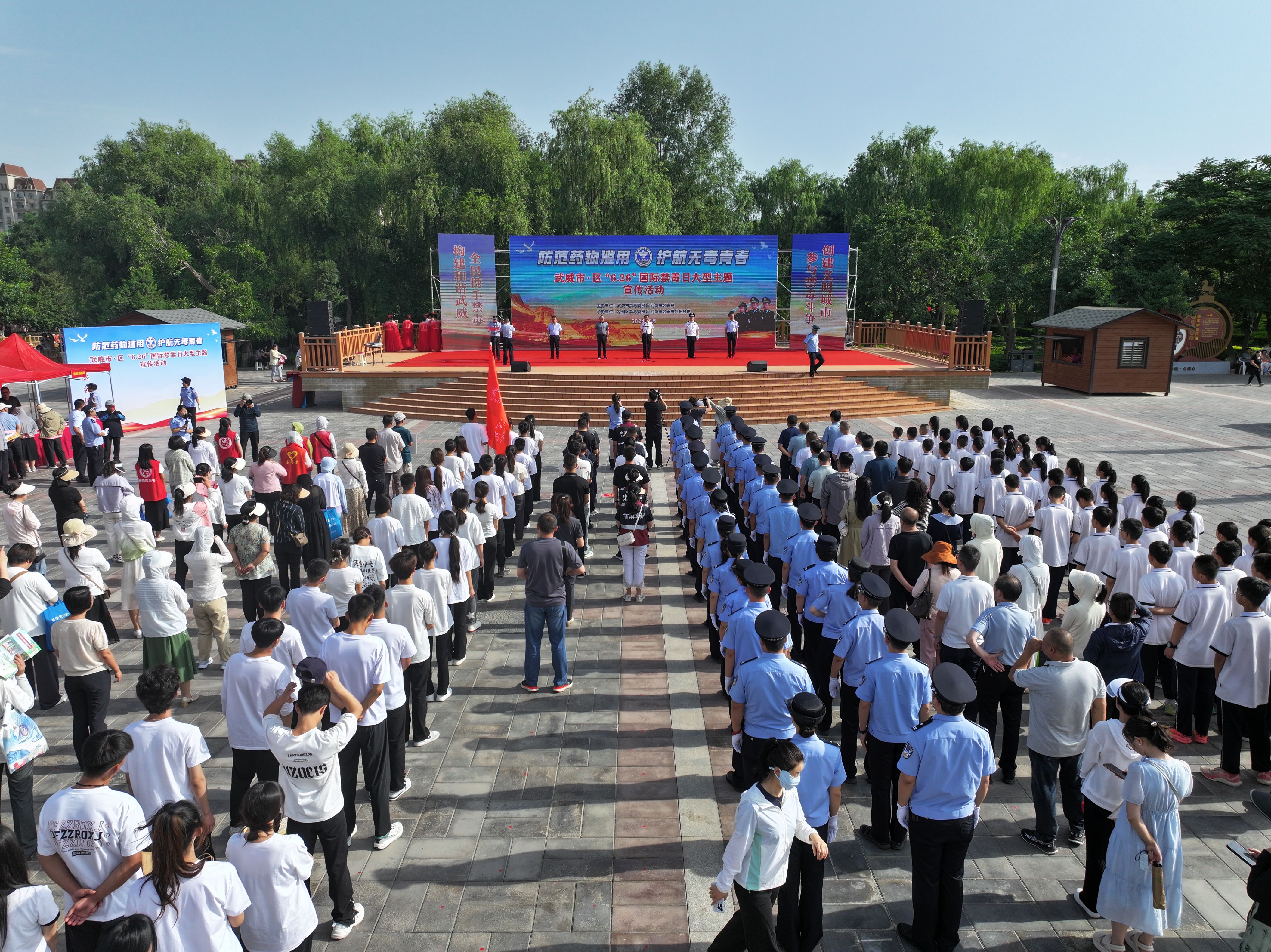 6月26日上午,學(xué)校組織50名師生參加了武威市禁毒委在涼州區(qū)植物園舉行的“6.26”國際禁毒日暨“防范藥物濫用 護(hù)航無毒青春”宣講活動?;顒又?,我校學(xué)生代表宣讀了《青少年防范藥物濫用倡議書》,師生在簽名墻簽名。
