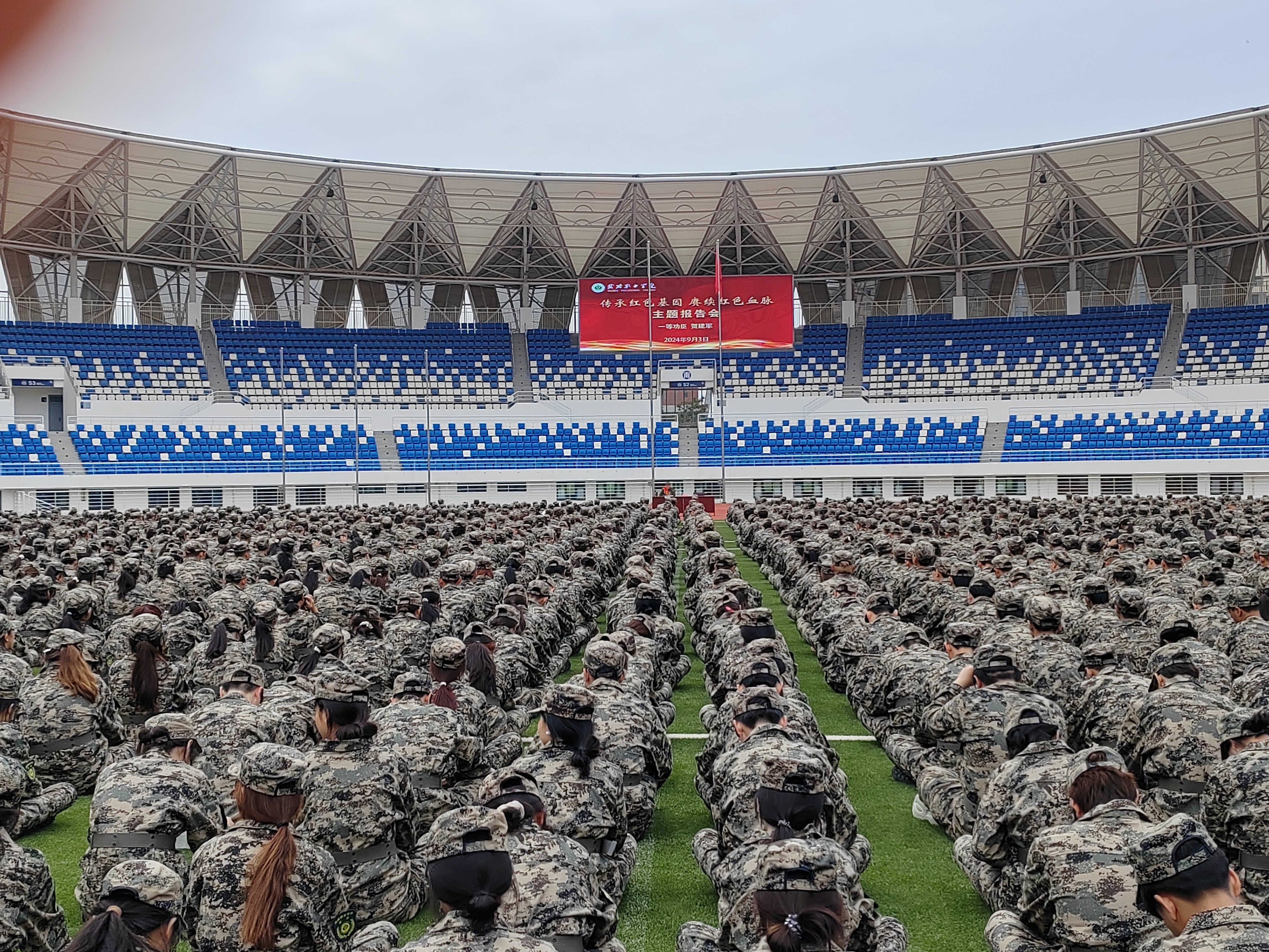 天地英雄氣,千秋尚凜然。為進一步傳承紅色基因、弘揚革命精神,培養(yǎng)大學(xué)生強烈的國防意識和國防觀念,充分激發(fā)2024級新生參加軍訓(xùn)的熱情和投身國防建設(shè)的使命感與責(zé)任感,9月3日上午,學(xué)校邀請云南邊境地區(qū)“老山防御作戰(zhàn)”參戰(zhàn)老兵、“一等戰(zhàn)功”英雄模范、“全國模范退役軍人”賀建軍同志開展了主題為“傳承紅色基因,賡續(xù)紅色血脈”的國防教育宣講會。