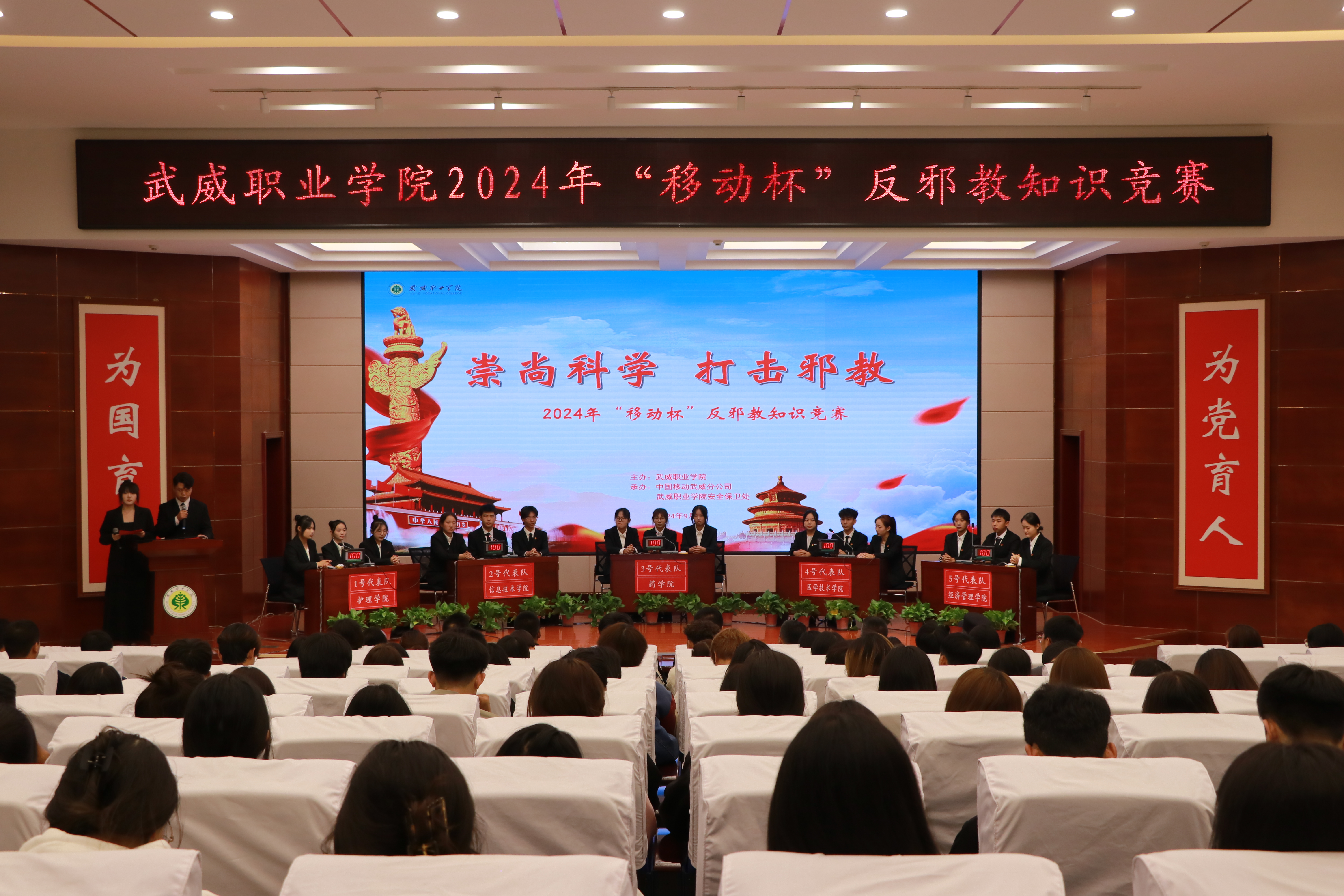 為全面貫徹落實(shí)防邪反邪工作,進(jìn)一步提高廣大師生對(duì)邪教組織反動(dòng)本質(zhì)的認(rèn)識(shí),切實(shí)增強(qiáng)識(shí)別邪教、抵制邪教的能力。9月13日,在學(xué)校菁英廳舉辦了2024年“移動(dòng)杯”反邪教知識(shí)競(jìng)賽。學(xué)校黨委委員、紀(jì)委書(shū)記陳曉煜、宣傳統(tǒng)戰(zhàn)部、學(xué)生工作部、安全保衛(wèi)處、校團(tuán)委負(fù)責(zé)人出席活動(dòng),各二級(jí)學(xué)院200余名師生觀看了比賽。