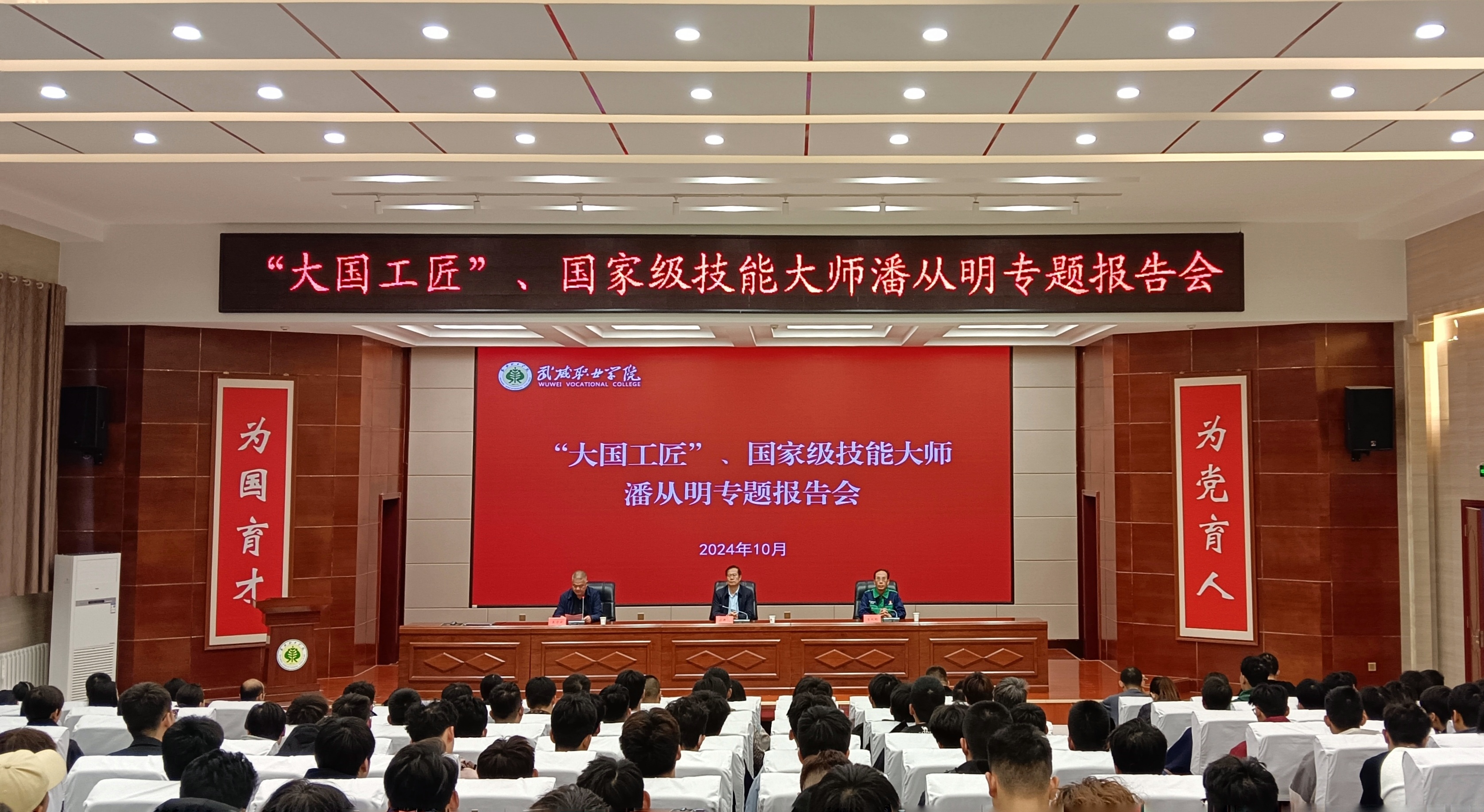 為深入學(xué)習(xí)貫徹落實(shí)習(xí)近平總書(shū)記關(guān)于大力弘揚(yáng)勞模精神、勞動(dòng)精神、工匠精神的重要指示精神,充分發(fā)揮廣大勞模以及各行各業(yè)先進(jìn)人物榜樣的引領(lǐng)作用,努力培養(yǎng)更多的大國(guó)工匠、能工巧匠。10月12日,學(xué)校邀請(qǐng)“大國(guó)工匠”全國(guó)勞動(dòng)模范、全國(guó)“五一”勞動(dòng)獎(jiǎng)?wù)芦@得者潘從明大師來(lái)我校作專題報(bào)告。校長(zhǎng)、黨委副書(shū)記張開(kāi)禮出席報(bào)告會(huì),學(xué)校黨委委員、副校長(zhǎng)王守云主持報(bào)告會(huì)。師生代表共計(jì)220余人參加了報(bào)告會(huì)。