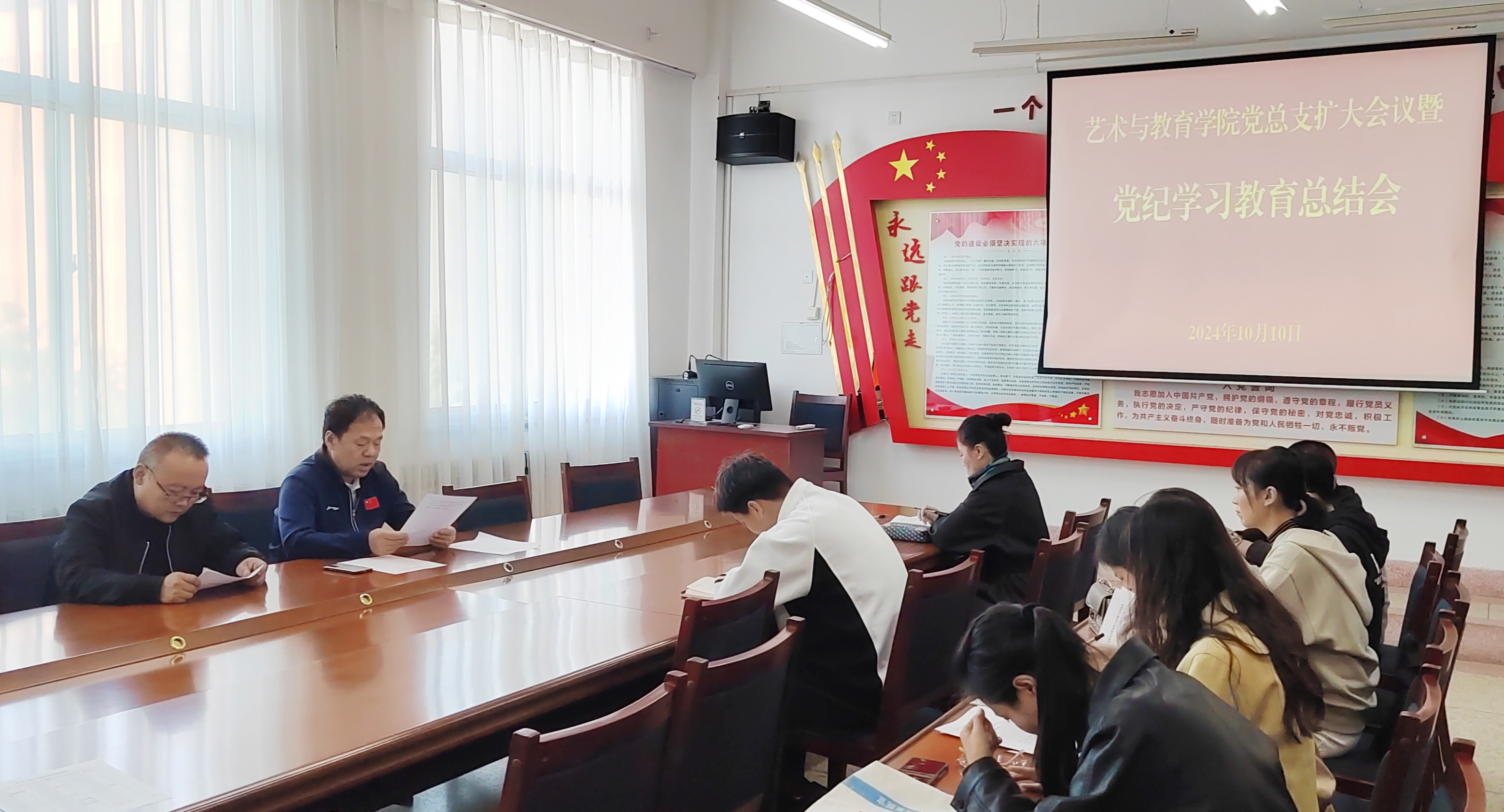 10月10日下午,學院黨總支擴大會議在勵勤樓209會議室舉行,會議學習傳達了習近平總書記在甘肅考察時的關于黨紀學習教育的重要講話和指示精神,黨的二十屆三中全會審議通過的《中共中央關于進一步全面深化改革、推進中國式現(xiàn)代化的決定》中關于黨紀學習教育的有關內容和中央、省委、市委、學校黨委黨紀學習教育總結大會精神,總結了藝術與教育學院黨總支黨紀學習教育開展情況。會議由黨總支書記王政主持,學院各黨支部委員參加,全體行政人員列席。