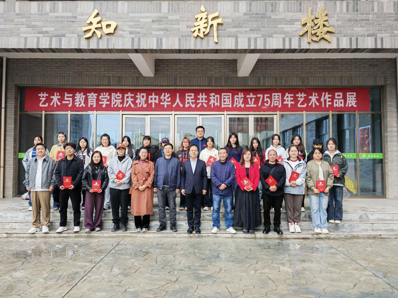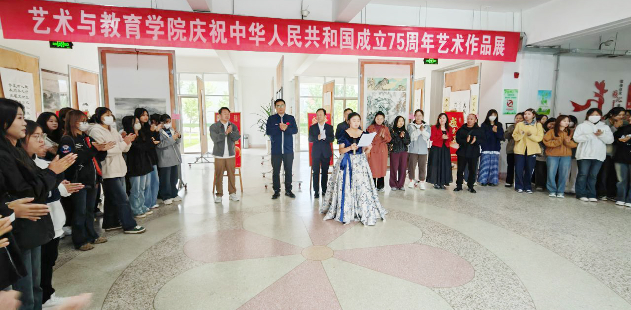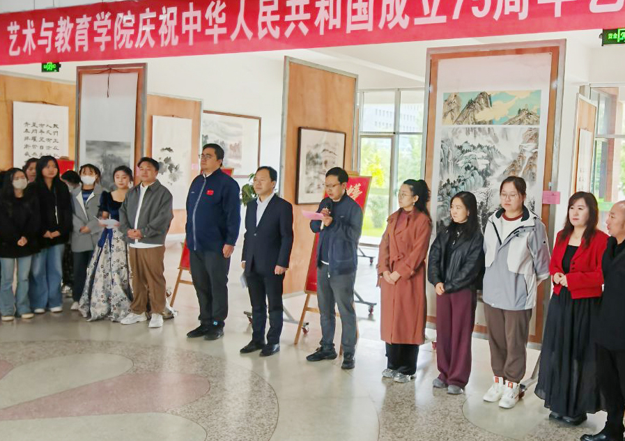 9月30日上午,藝術(shù)與教育學(xué)院慶祝新中國(guó)成立75周年藝術(shù)作品展在知新樓開幕。學(xué)院黨總支書記王政、副院長(zhǎng)蘆小鵬,美術(shù)教研室全體教師及學(xué)生代表參加了開幕式。
