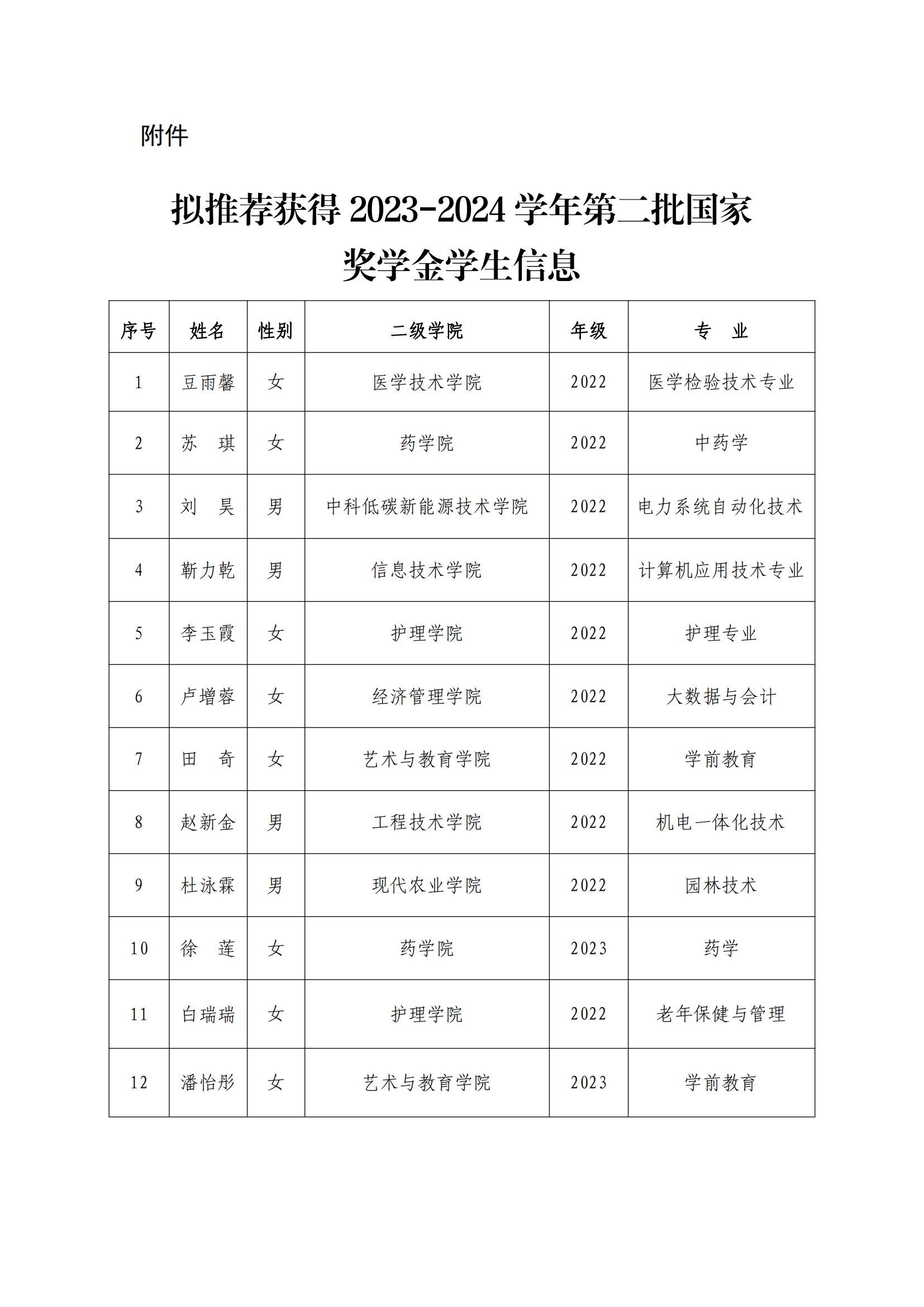 武威職業(yè)學院關于2023-2024學年第二批國家獎學金擬獲得者的公示