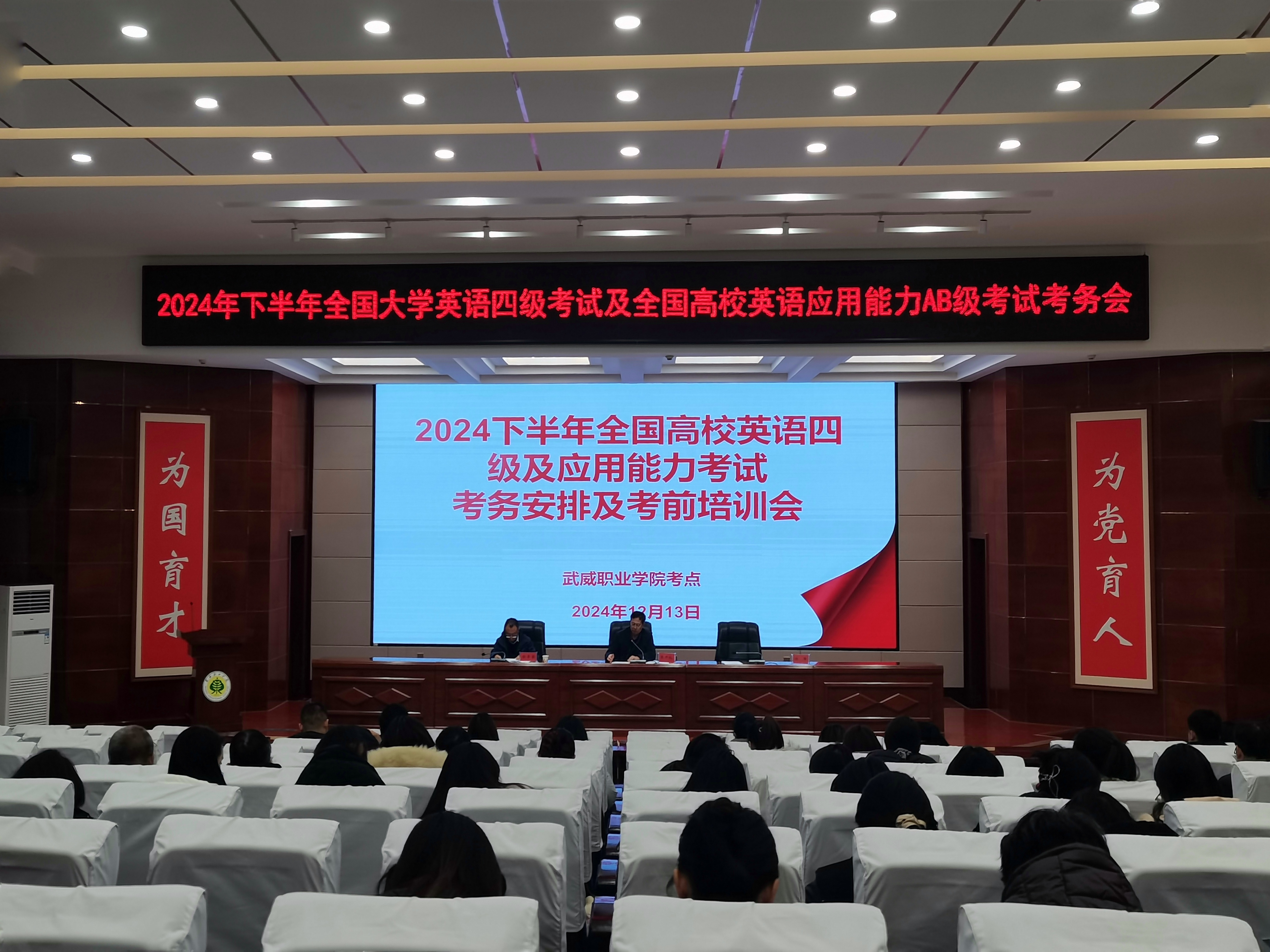 12月13日下午,在菁英廳召開了全國大學(xué)生英語四級暨全國高校英語應(yīng)用能力AB級考試的考務(wù)安排及考前培訓(xùn)會議。會上,黨委副書記、副校長張開禮強(qiáng)調(diào)了考試紀(jì)律的重要性,要求所有監(jiān)考人員和考生嚴(yán)格遵守考試規(guī)定,確??荚嚨墓健⒐晚樌M(jìn)行。培訓(xùn)考試中心主任顏魯薪就考試的各項(xiàng)具體事宜進(jìn)行了詳細(xì)安排,包括考試流程、考場布置、試卷分發(fā)與回收等環(huán)節(jié),確??荚嚬ぷ鞯挠行蜻M(jìn)行。