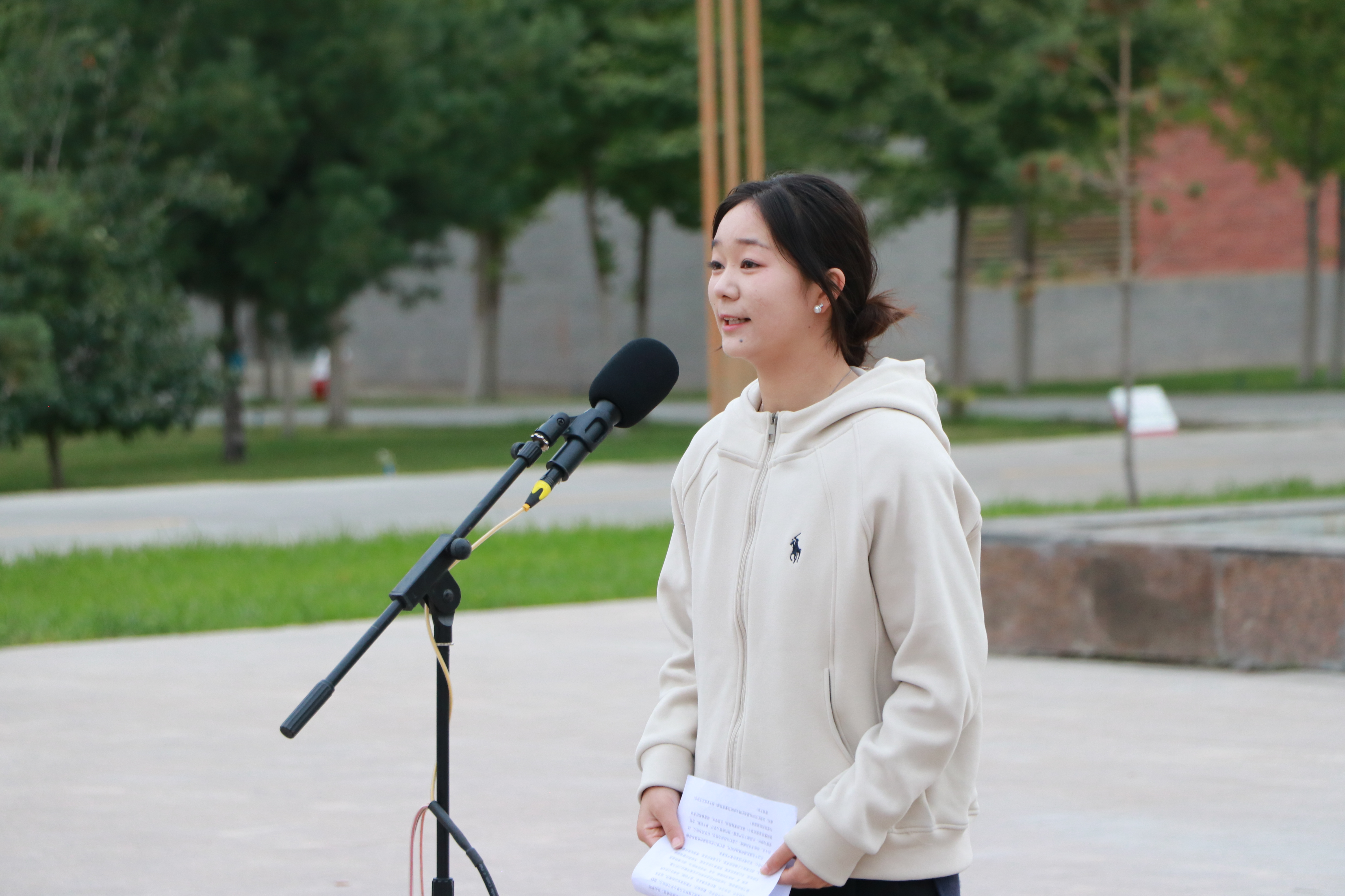 優(yōu)秀學(xué)生代表、藝術(shù)與教育學(xué)院2023級(jí)學(xué)前教育專業(yè)的馬青妍同學(xué)進(jìn)行了國旗下的演講,她的演講激勵(lì)著在場(chǎng)的每一個(gè)人,表達(dá)了對(duì)祖國的熱愛和對(duì)未來的期許。
