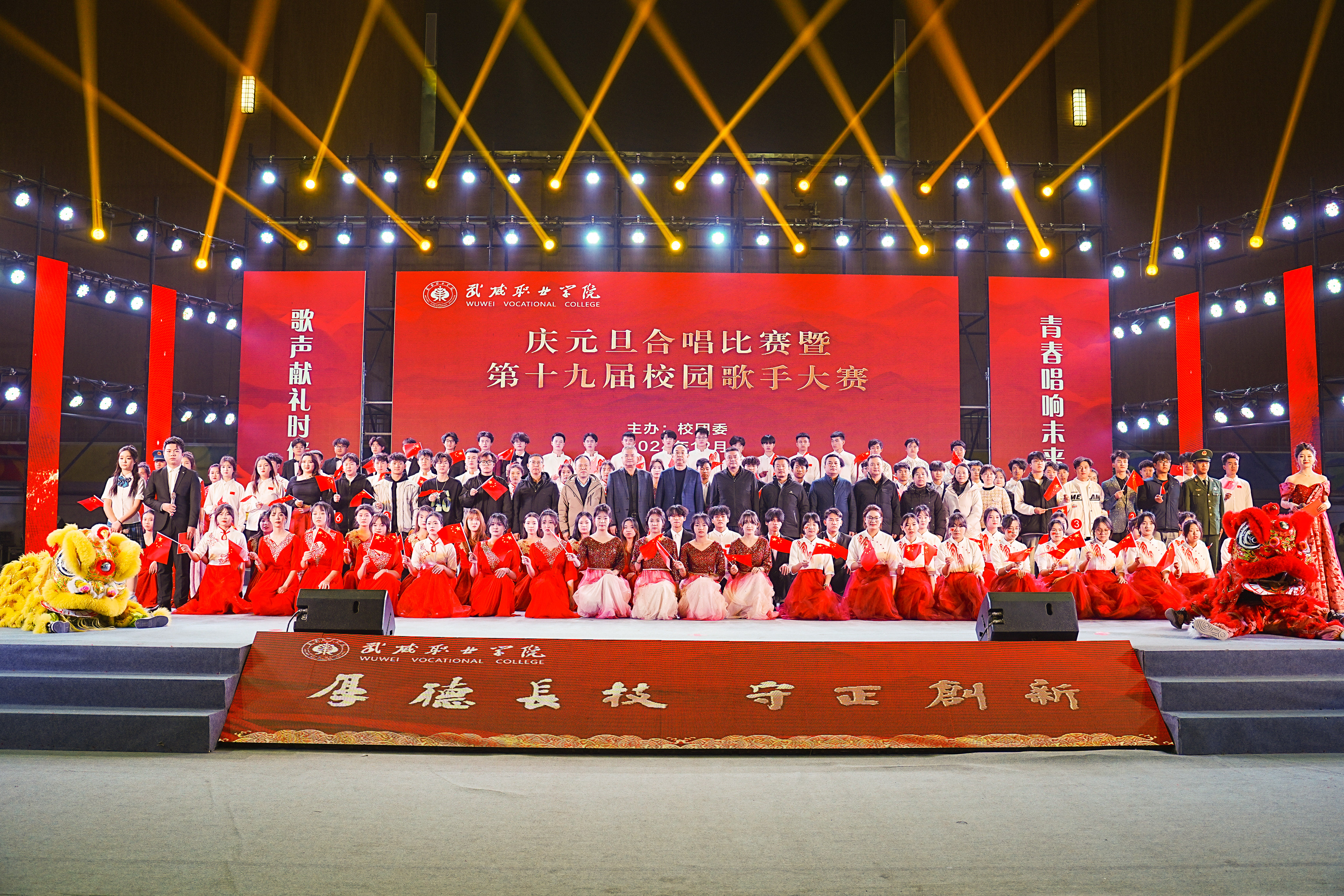 歌聲獻(xiàn)禮時(shí)代,青春唱響未來(lái)。12月26日晚,學(xué)?!皯c元旦”合唱比賽暨第十九屆校園歌手大賽在體育館成功舉辦。學(xué)校黨委書(shū)記王宏出席活動(dòng)并為獲獎(jiǎng)集體和個(gè)人頒獎(jiǎng),黨委委員、副校長(zhǎng)王守云出席活動(dòng),各二級(jí)學(xué)院和相關(guān)部門(mén)負(fù)責(zé)人與2000余名師生現(xiàn)場(chǎng)觀(guān)看了比賽。