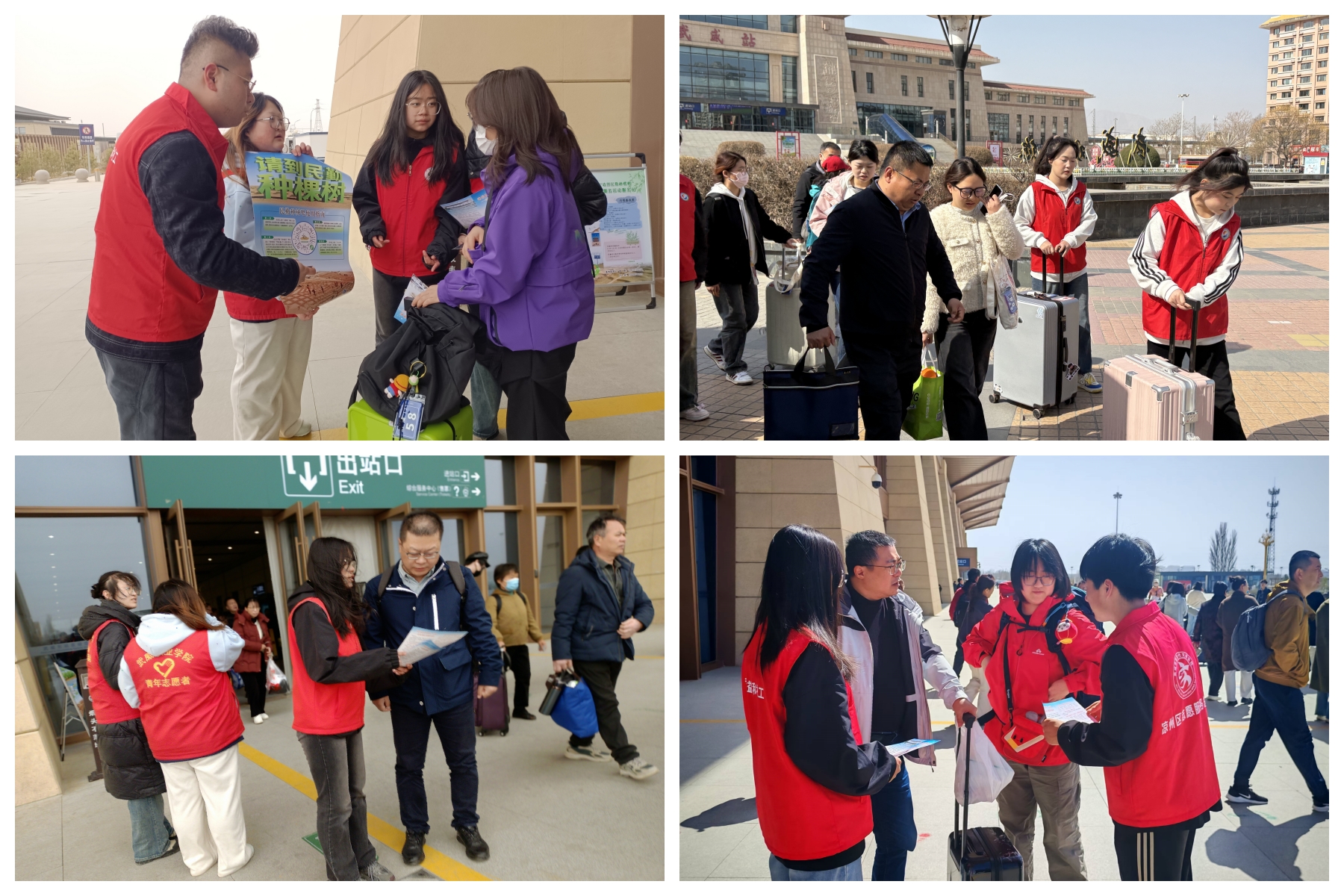 助力“請(qǐng)到民勤種棵樹”活動(dòng)。宣傳統(tǒng)戰(zhàn)部、校團(tuán)委組織志愿者在武威高鐵站、火車站、客運(yùn)中心設(shè)立志愿服務(wù)站,為前來(lái)參加“請(qǐng)到民勤種棵樹”活動(dòng)的志愿者們提供引導(dǎo)服務(wù),詳細(xì)告知前往民勤的乘車路線、換乘信息和注意事項(xiàng),協(xié)助搬運(yùn)行李,引導(dǎo)他們有序乘車。