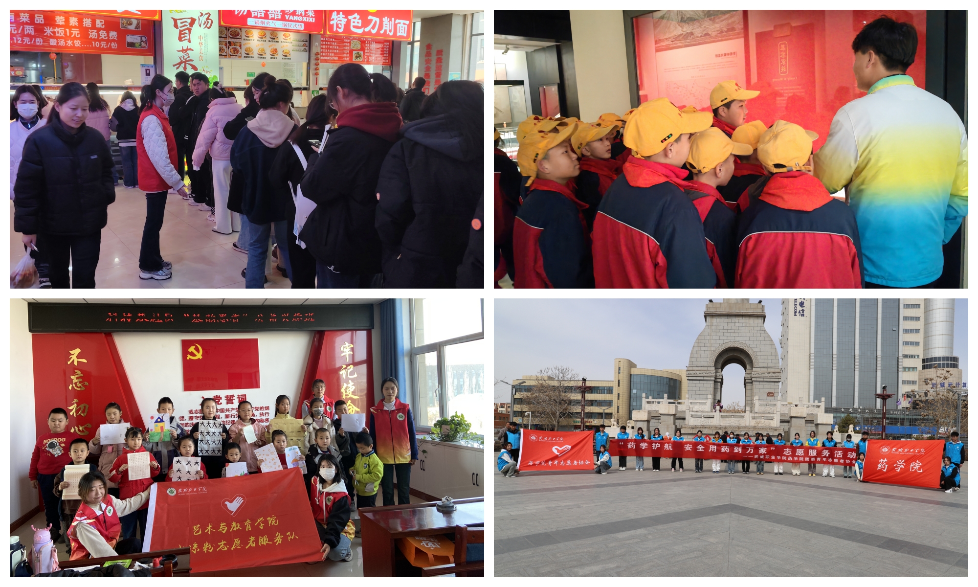 結(jié)合專業(yè)特色,開展志愿服務(wù)活動(dòng)。3月5日,現(xiàn)代農(nóng)業(yè)學(xué)院20余名志愿者在學(xué)校餐廳開展“食安校園 你我同行”志愿服務(wù)活動(dòng),普及食品安全科學(xué)知識(shí)。3月5日,經(jīng)濟(jì)管理學(xué)院組織旅游管理專業(yè)志愿者走進(jìn)博物館,向前來(lái)參觀的游客義務(wù)講解。3月15日,藝術(shù)與教育學(xué)院學(xué)前教育專業(yè)志愿者走進(jìn)科技巷社區(qū),為留守兒童帶去豐富的興趣活動(dòng),激發(fā)小朋友們對(duì)唱歌、舞蹈、書法、樂器演奏等特長(zhǎng)的學(xué)習(xí)熱情。3月20日,醫(yī)學(xué)技術(shù)學(xué)院開展口腔衛(wèi)生健康宣傳志愿服務(wù)活動(dòng),倡議改善刷牙習(xí)慣,注重口腔健康。3月22日,藥學(xué)院志愿者在文化廣場(chǎng)開展“藥學(xué)護(hù)航,安全用藥到萬(wàn)家”志愿服務(wù)活動(dòng),為市民們科普正確用藥知識(shí),講解安全用藥和藥品保存常識(shí),通過發(fā)放宣傳資料、現(xiàn)場(chǎng)講解等方式,詳細(xì)介紹藥品回收的重要意義。