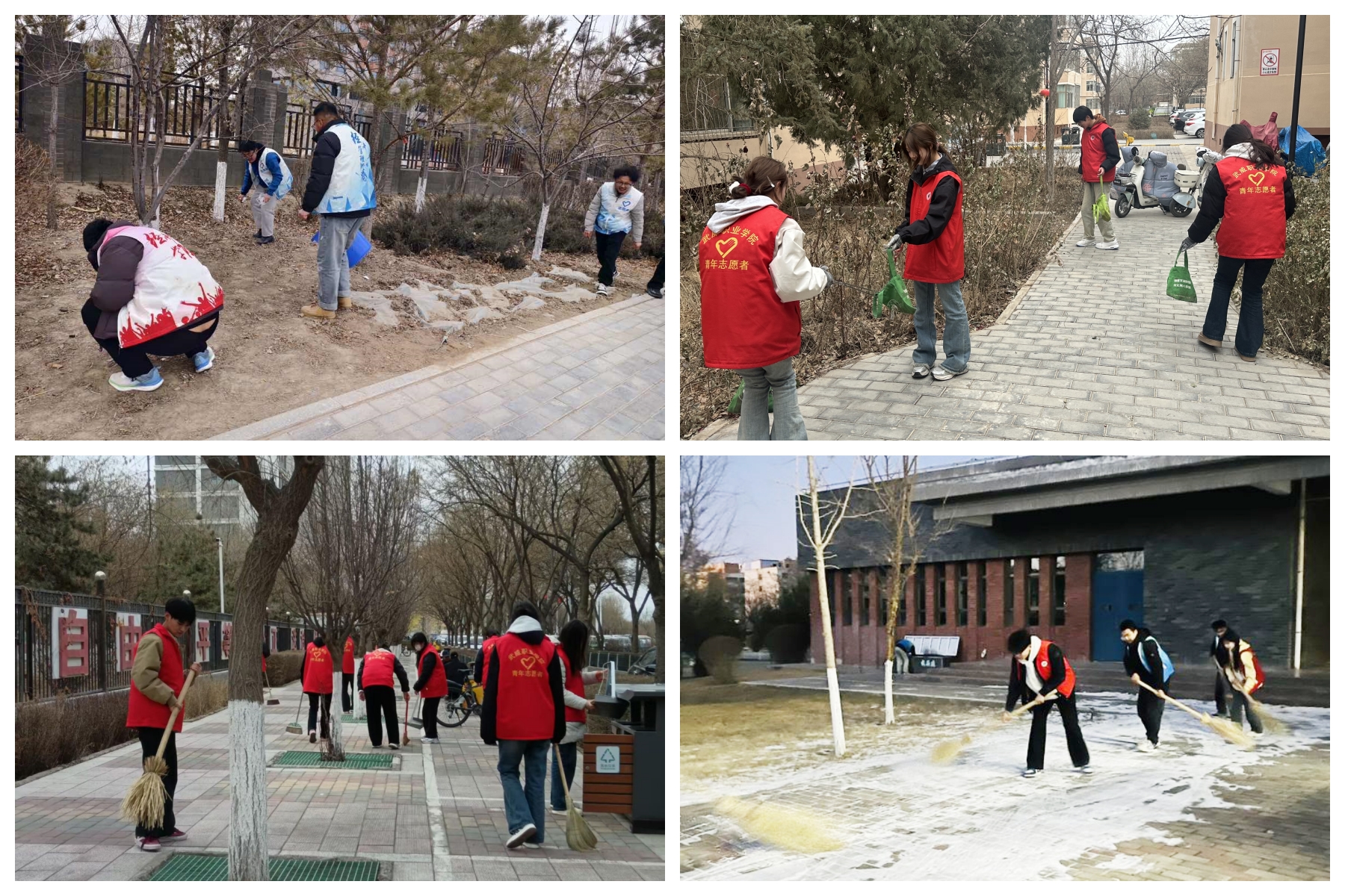 開展美麗校園志愿服務(wù)活動(dòng)。3月5日,校團(tuán)委組織開展“學(xué)雷鋒日”集中活動(dòng),各二級(jí)學(xué)院320余名志愿者在學(xué)校東門及北門外周邊區(qū)域開展衛(wèi)生清掃,清掃人行道枯葉、擦洗公交站臺(tái)、清理綠化帶雜物、擺放共享單車、撿拾地面煙頭、擦洗垃圾箱、條凳及綠化帶隔離欄。