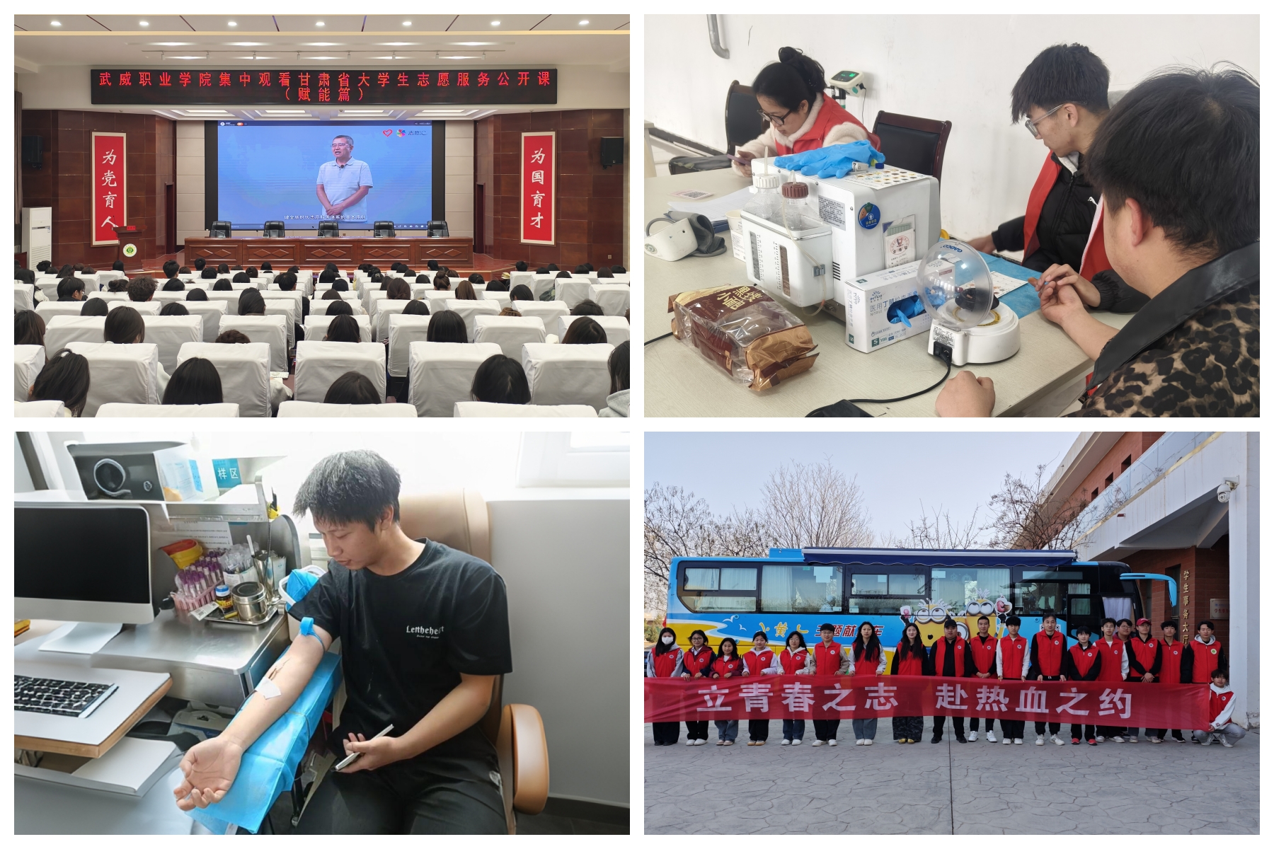 開展無(wú)償獻(xiàn)血活動(dòng)。3月24日,校團(tuán)委邀請(qǐng)市中心血站工作人員在學(xué)校開展“愛心無(wú)界 獻(xiàn)血有愛”無(wú)償獻(xiàn)血知識(shí)講座,220名有獻(xiàn)血意向的同學(xué)聆聽講座。3月26日-28日,校團(tuán)委聯(lián)系市中心血站在學(xué)校開展“立青春之志 赴熱血之約”無(wú)償獻(xiàn)血活動(dòng),100名志愿者累計(jì)捐獻(xiàn)熱血20700ml,為學(xué)校無(wú)償獻(xiàn)血事業(yè)做出突出貢獻(xiàn),為健康中國(guó)目標(biāo)貢獻(xiàn)青春力量。