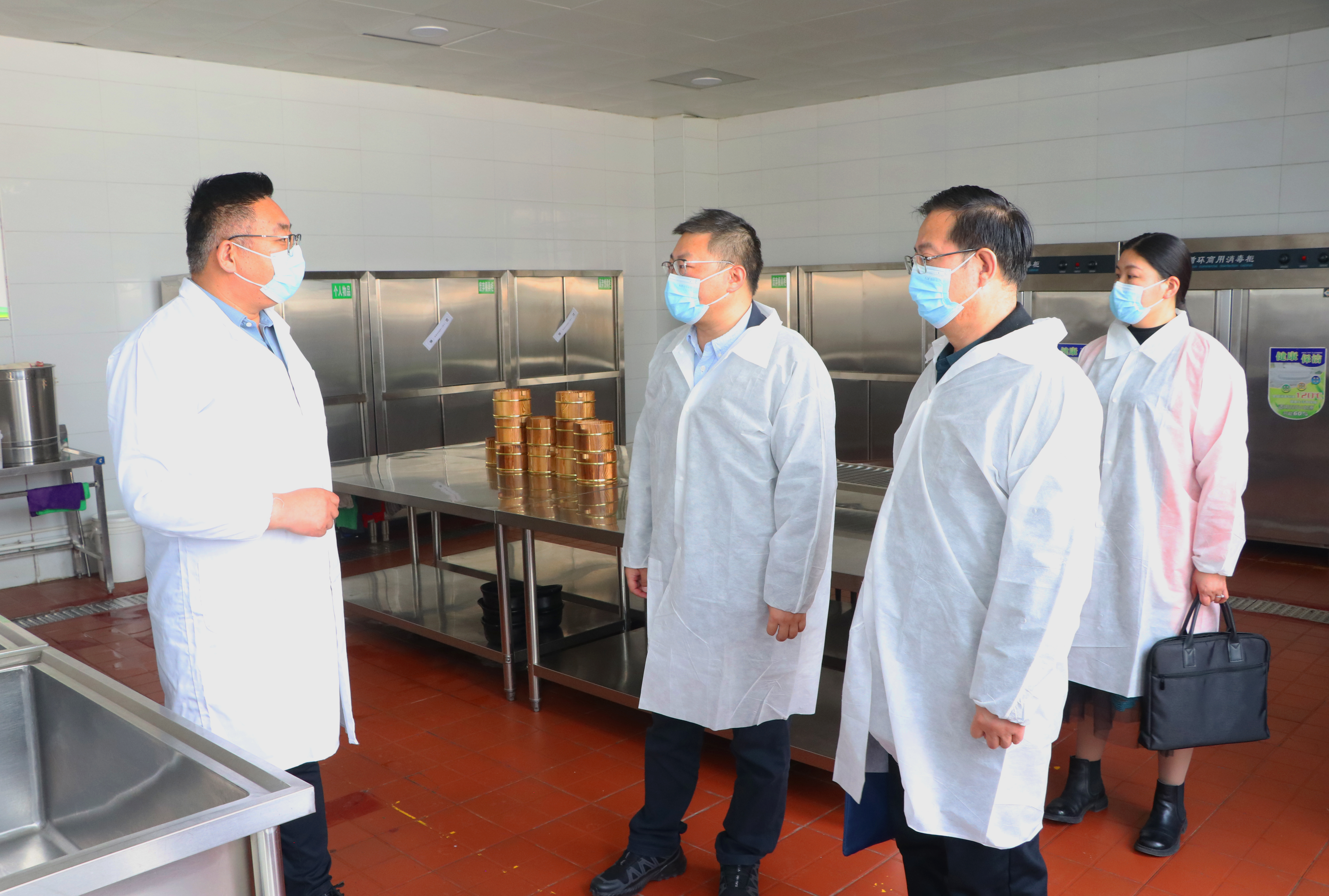 會后,參會人員深入食堂餐具清洗區(qū)、食品加工區(qū)、留樣區(qū)等關鍵區(qū)域,從食材包裝、新鮮度、品質、儲存等,菜品留樣、餐具消毒等各個環(huán)節(jié)和操作流程以及食堂衛(wèi)生狀況進行詳細檢查。李海軍鼓勵食堂要積極創(chuàng)新,豐富菜品種類,滿足師生多樣化的飲食需求,提升就餐體驗。