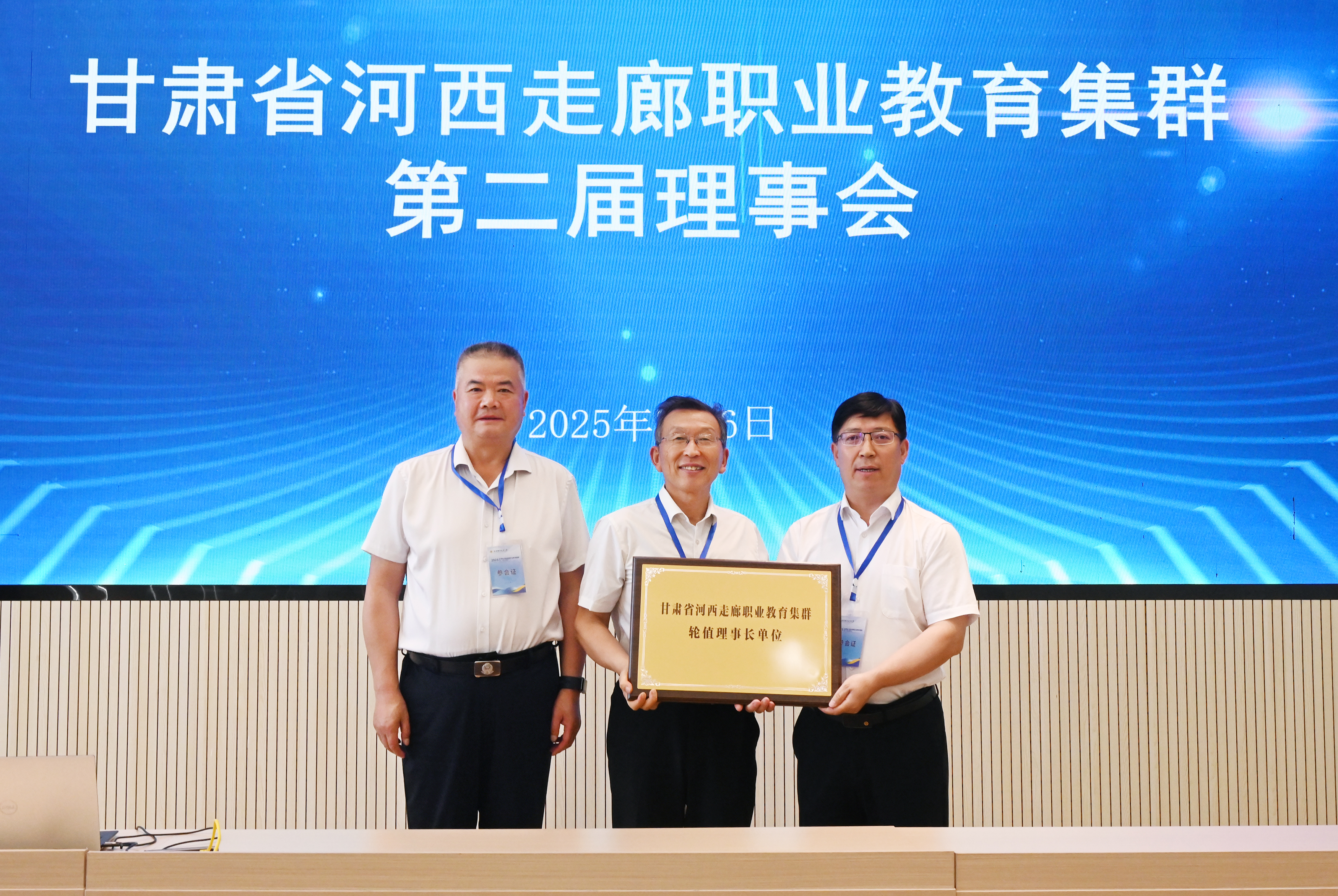會(huì)上,集群發(fā)布《甘肅省河西走廊職業(yè)教育集群第二屆理事會(huì)武威宣言》,舉行了集群第三屆輪值理事長單位交接儀式,甘肅畜牧工程職業(yè)技術(shù)學(xué)院從武威職業(yè)技術(shù)大學(xué)手中接過了集群的接力棒,擔(dān)任集群第三屆輪值理事長單位。隨著交接儀式的順利完成,集群第二屆理事會(huì)年會(huì)圓滿落下帷幕。會(huì)議結(jié)束后,與會(huì)代表合影留念并參觀走訪學(xué)校實(shí)驗(yàn)實(shí)訓(xùn)基地。
