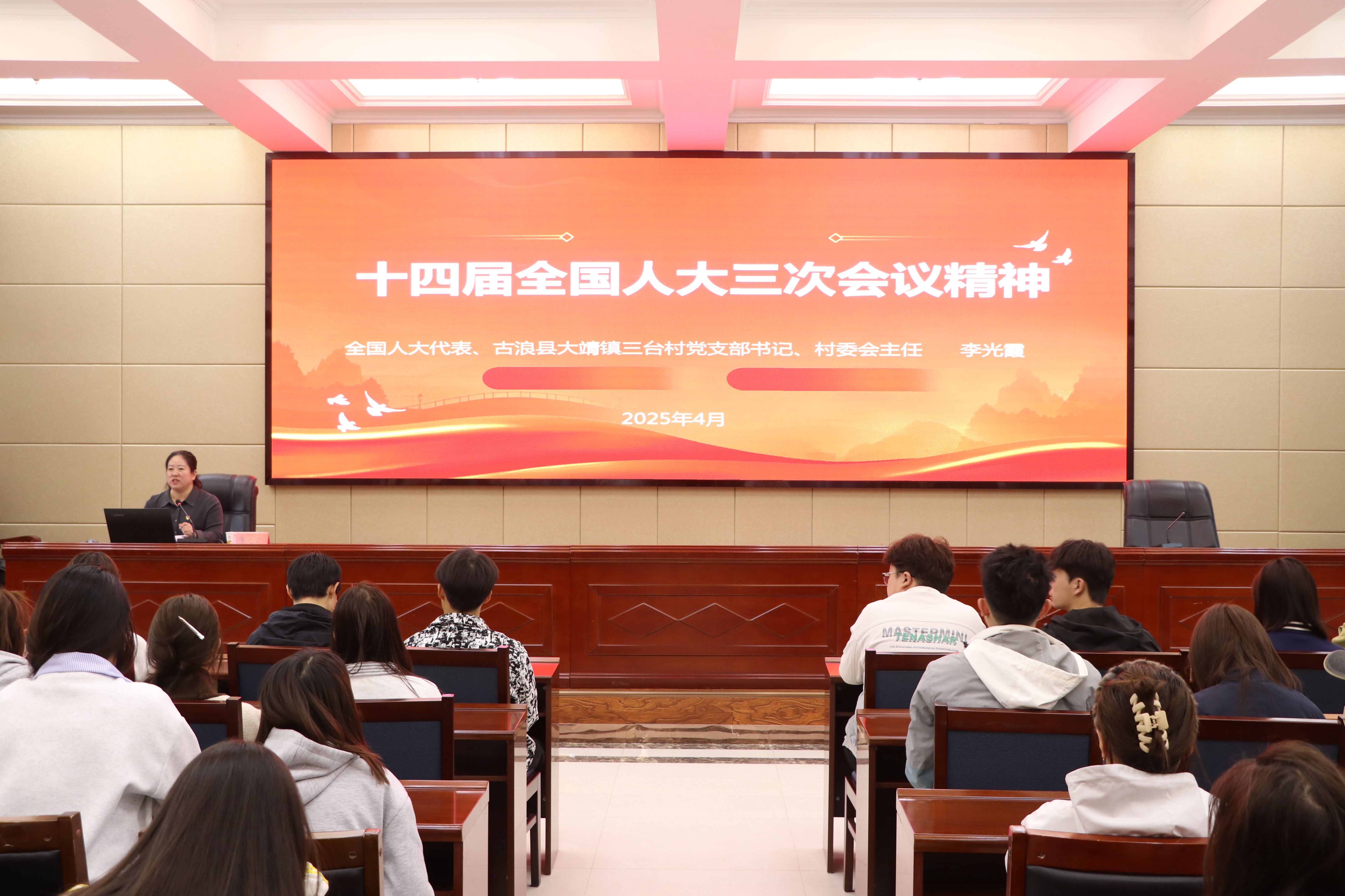 宣講會上,李光霞以《十四屆全國人大三次會議精神》為主題,結(jié)合自身日常工作與履職經(jīng)歷,從2025年全國兩會基本情況、甘肅省代表團履職情況等方面入手,用通俗易懂的語言匯報了全國兩會的重要內(nèi)容。宣講報告主題鮮明、站位高遠(yuǎn)、內(nèi)容豐富、系統(tǒng)全面,既有理論的高度,使廣大師生深刻領(lǐng)會到兩會精神的重大意義和豐富內(nèi)涵;又有實踐的深度,體現(xiàn)出“人民代表為人民”的職責(zé)使命與責(zé)任擔(dān)當(dāng)。