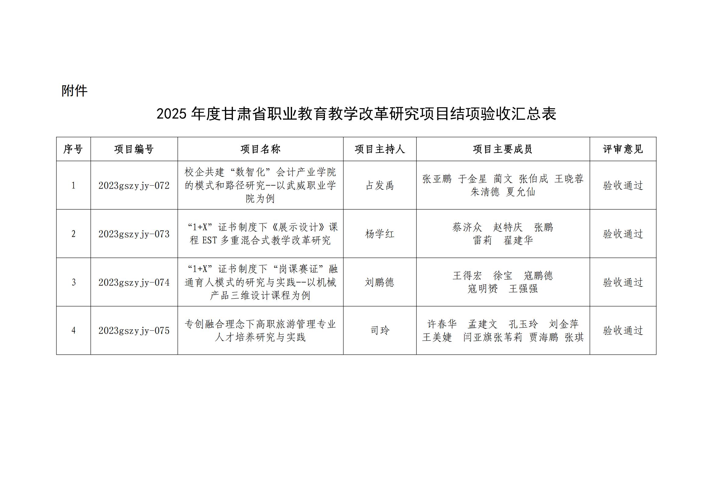 關于甘肅省職業(yè)教育教學改革研究項目結(jié)項驗收校級評審結(jié)果的公示