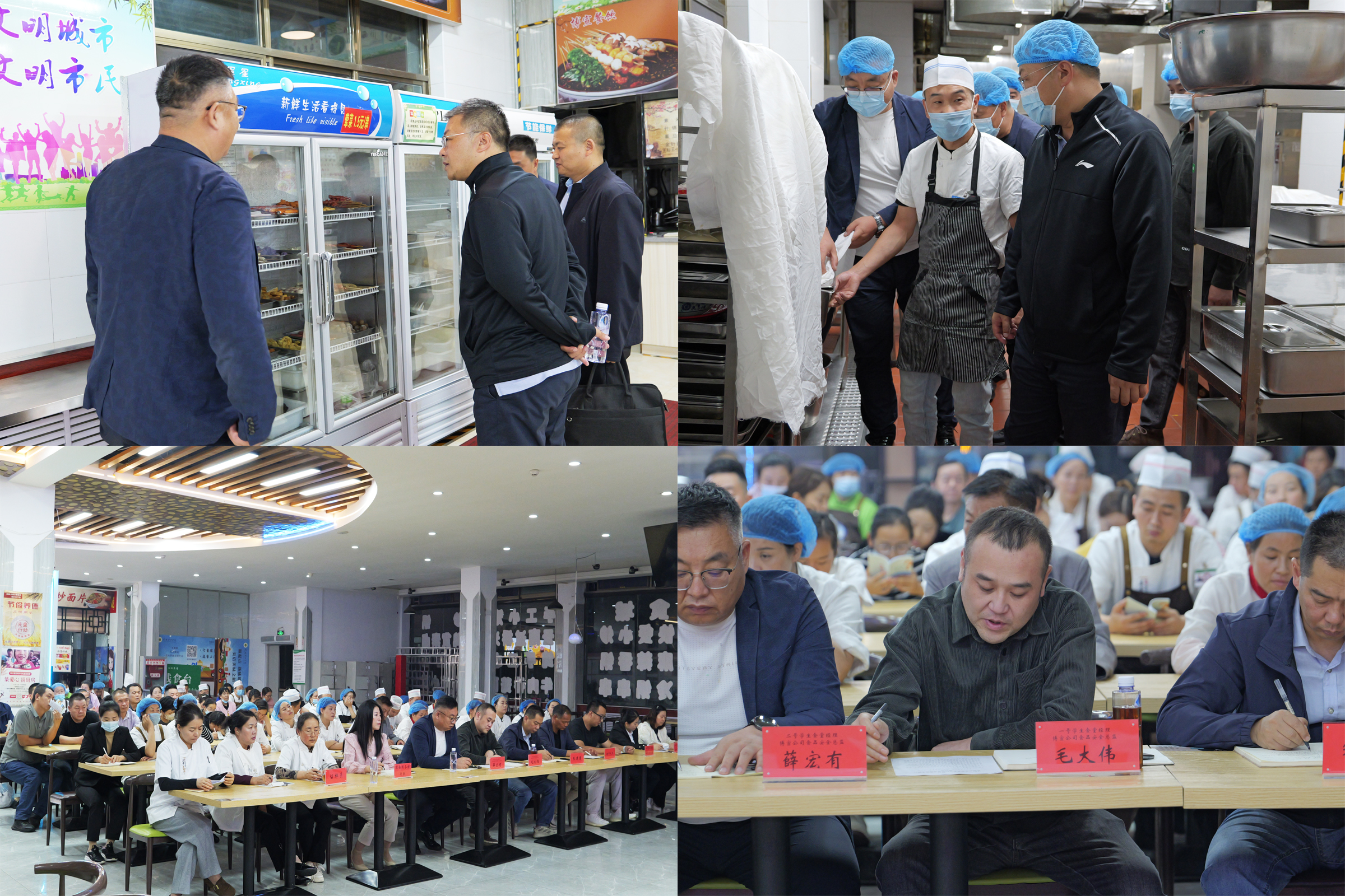 會(huì)后,李海軍和食品安全管理人員實(shí)地檢查了餐具清洗區(qū)、食品加工區(qū)、留樣區(qū)等重點(diǎn)區(qū)域,詳細(xì)了解了食材儲(chǔ)存、加工流程、菜品留樣、餐具消毒等環(huán)節(jié)及食堂整體衛(wèi)生狀況。