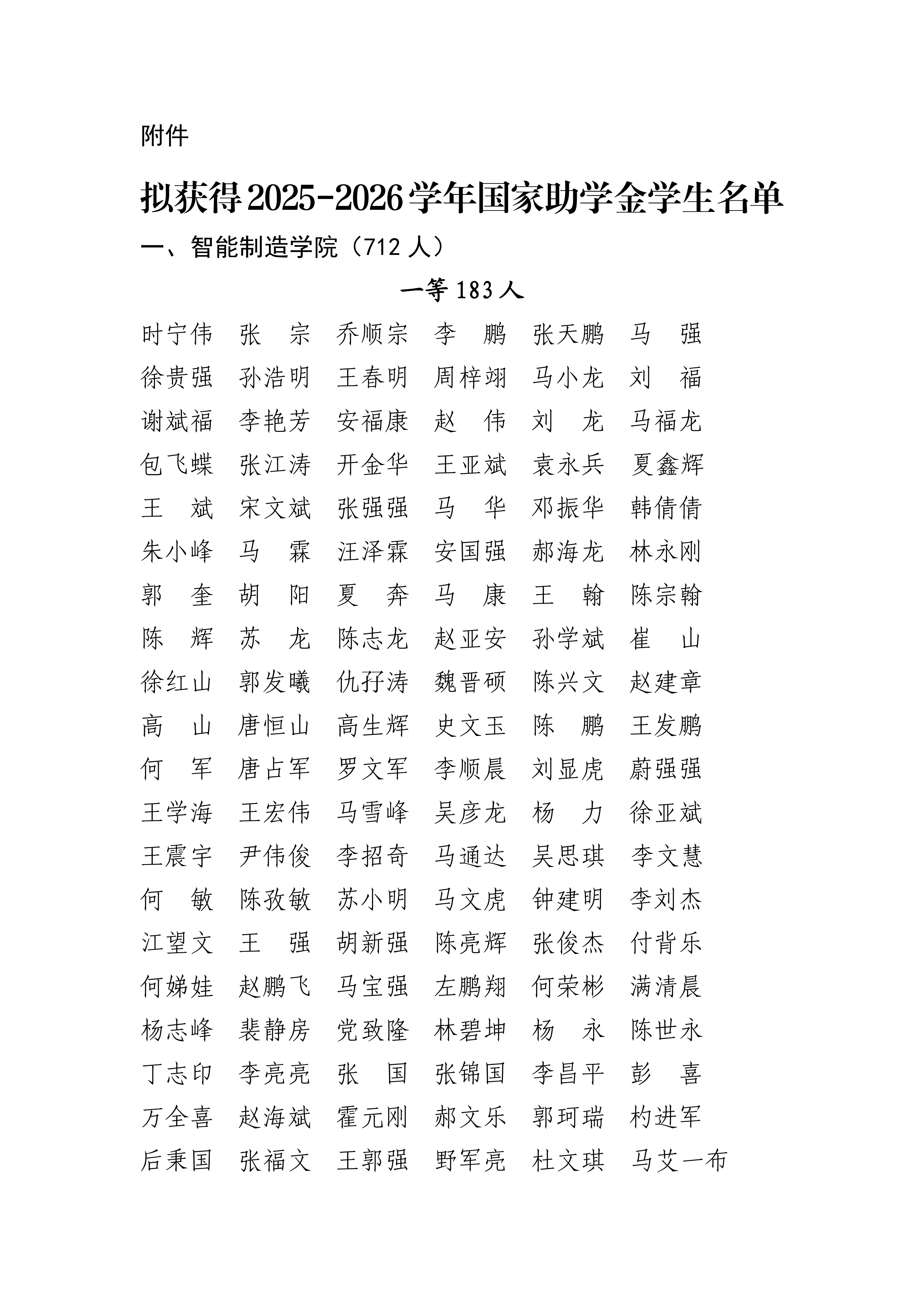 學校關(guān)于擬獲得2025-2026學年國家助學金學生名單的公示