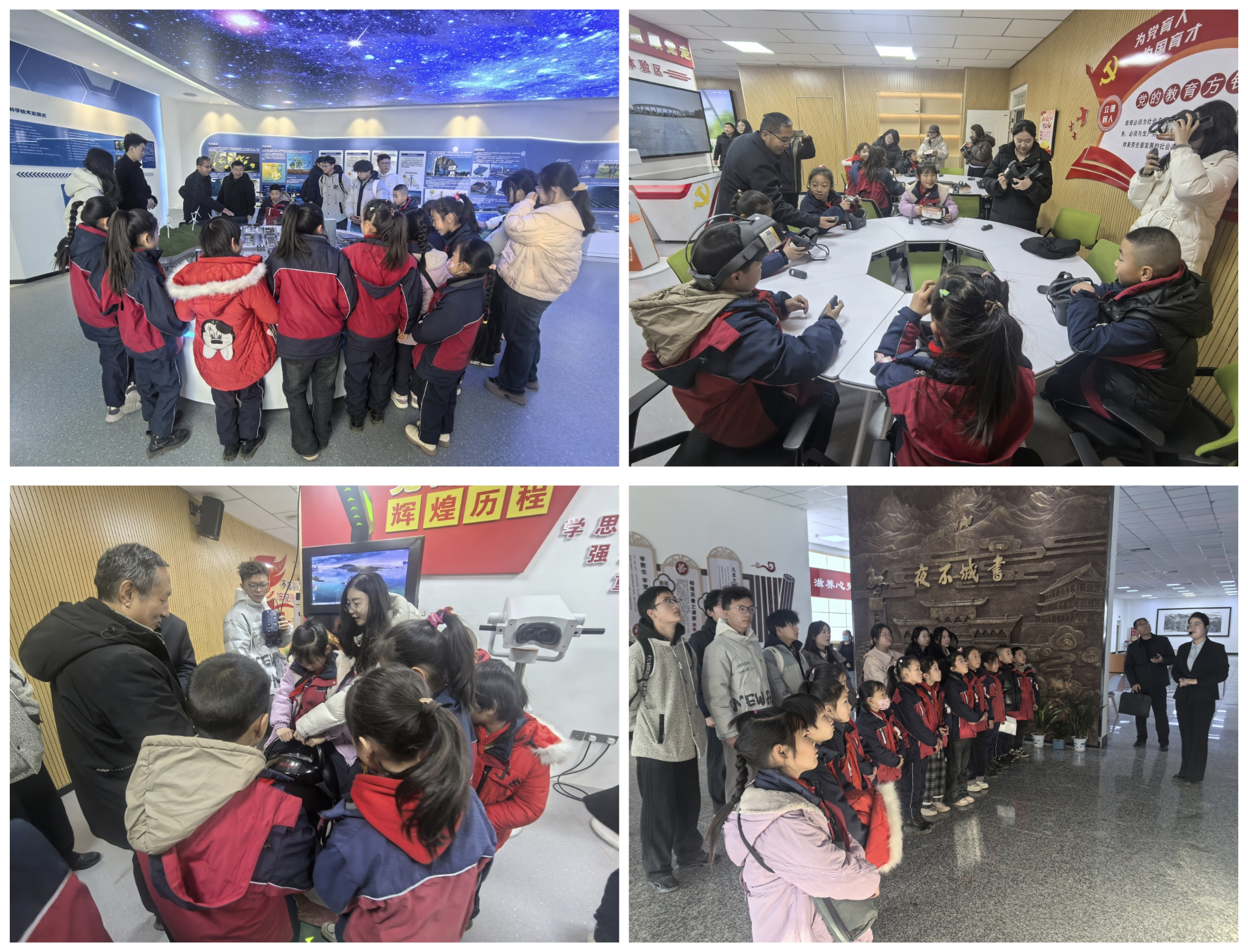 共建簽約儀式后,學(xué)生們參觀了學(xué)校圖書館、新能源科技館、課程思政教學(xué)研究示范中心等場館。孩子們穿梭于書香四溢的閱覽區(qū),駐足于各種先進的模型與互動裝置前,直觀感受VR技術(shù)賦能思政課堂的創(chuàng)新魅力,眼神中充滿了對知識的渴望與探索,這次參觀不僅是一次校園環(huán)境體驗,更是一次深刻的“潤物細無聲”思政教育,在孩子們心中播下了求知與創(chuàng)新的種子。
