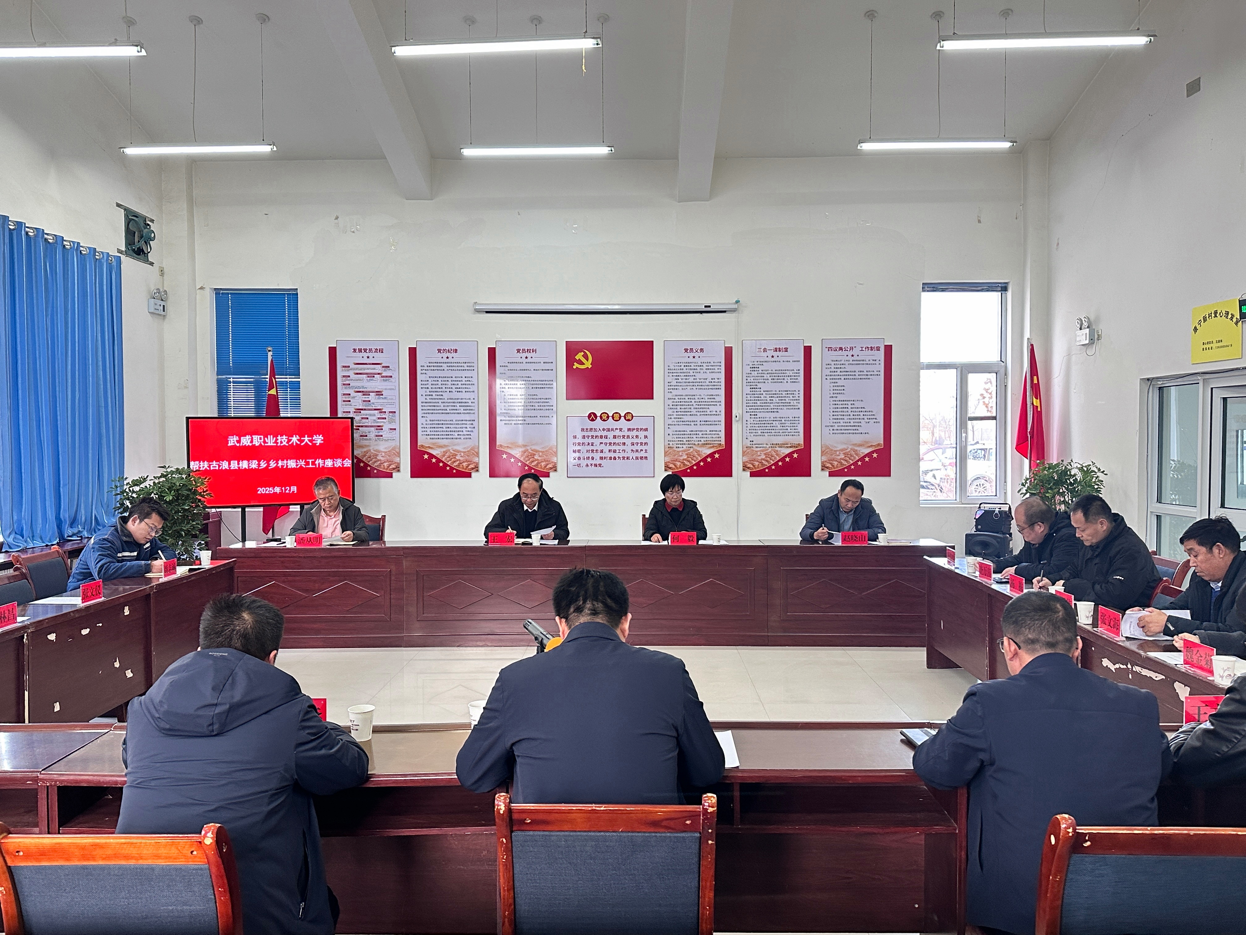 12月9日,黨委書記王宏帶隊到古浪縣橫梁鄉(xiāng)幸福新村、康寧新村,實地調(diào)研鄉(xiāng)村振興幫扶項目進(jìn)展,并召開校地幫扶工作座談會。黨委委員、副校長何毅,以及校工會、校辦企業(yè)泰豐新能源有限責(zé)任公司相關(guān)負(fù)責(zé)人參加座談會。