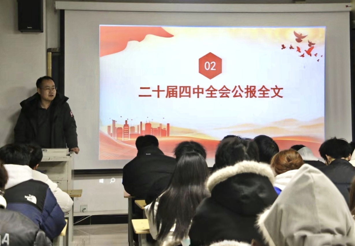12月5日,學(xué)院黨總支書記黃述杰率先開展專題培訓(xùn),圍繞黨的二十屆四中全會召開的時代背景、重大意義和核心要義進(jìn)行系統(tǒng)解讀,全體黨員及入黨積極分子參會學(xué)習(xí)。黃述杰強(qiáng)調(diào),要持續(xù)深化黨的創(chuàng)新理論武裝,將學(xué)習(xí)貫徹黨的二十屆四中全會精神與學(xué)習(xí)貫徹習(xí)近平新時代中國特色社會主義思想緊密結(jié)合,切實(shí)把學(xué)習(xí)成果轉(zhuǎn)化為推動工作的實(shí)際成效;要縱深推進(jìn)“四個突出”戰(zhàn)略發(fā)展思路,緊扣鑄牢中華民族共同體意識主線,錨定“十個較強(qiáng)”發(fā)展目標(biāo),推動“鑄牢”工作全面融入專業(yè)建設(shè)、教書育人全過程各方面;要聚焦教育教學(xué)主責(zé)主業(yè),持續(xù)深化“大學(xué)風(fēng)”建設(shè)與課程思政改革,著力在抓落實(shí)、抓基層、抓學(xué)風(fēng)上實(shí)現(xiàn)新突破、取得新成效。