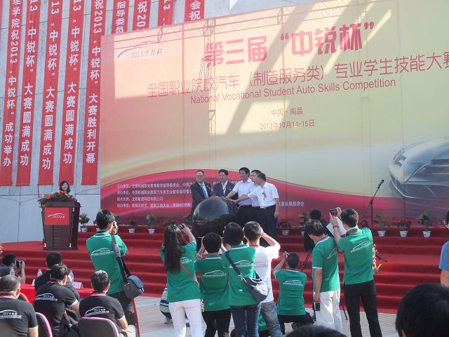 2013年10月14—15日,第三屆“中銳杯”全國職業(yè)院校汽車(制造服務(wù)類)專業(yè)學(xué)生技能大賽”總決賽在江西南昌舉行。全國近百所院校三百多名學(xué)生參加了此次大賽。本次大賽由全國機械職業(yè)教育教學(xué)指導(dǎo)委員會、中國汽車流通協(xié)會、機械工業(yè)教育發(fā)展中心共同主辦,全國機械職業(yè)教育汽車類專業(yè)教學(xué)指導(dǎo)委員會、江西現(xiàn)代職業(yè)技術(shù)學(xué)院承辦。本次大賽裁判和評委均由汽車行業(yè)的各大代表以及資深企業(yè)營銷專家擔(dān)任,因此評選也將更加注重實踐性和專業(yè)性。
